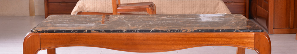 天然花岗岩的石头配上海棠木的自然纹理让其浑然天成,内收的桌子腿让餐椅跟容易放进来,而不占地方。