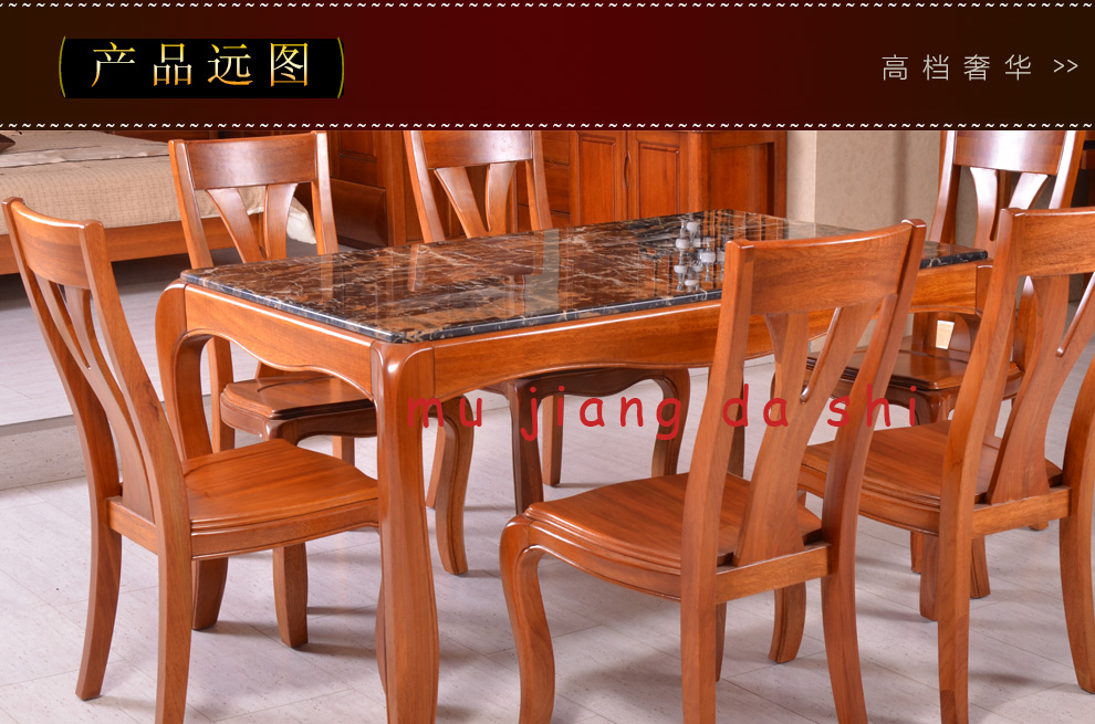 木匠大师实木系列餐桌餐椅 大理石台面餐桌 现代中式风格餐桌