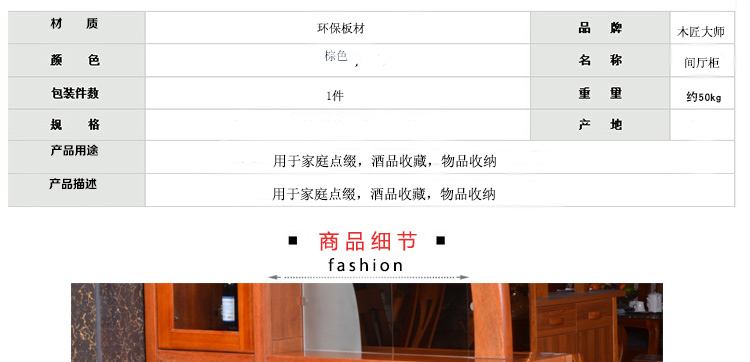 酒柜很不错,材质很好,实木雕花处理的很到位,没有任何异味,特别是颜色跟我家里的装修风格很搭,真心的不错,和店家描述的一样,赞一个