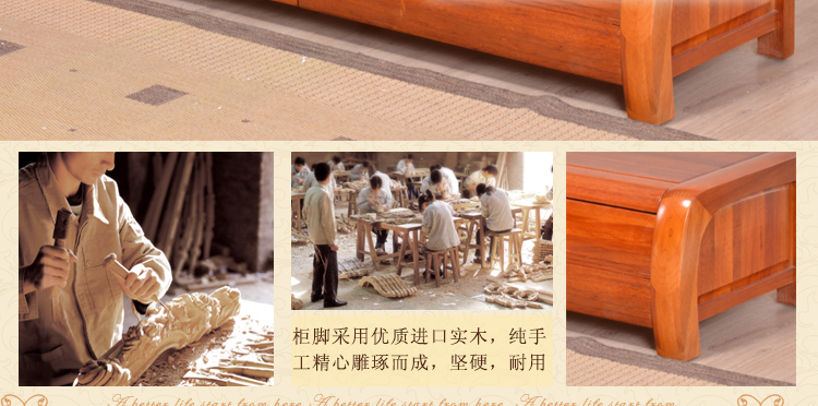 木匠大师实木系列三抽地柜 电视柜 现代中式风格全实木地柜