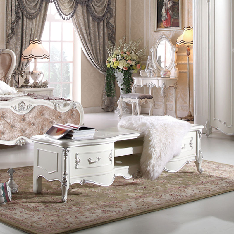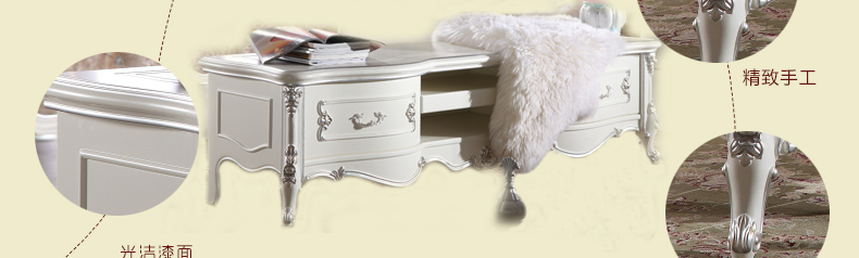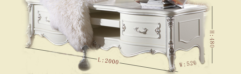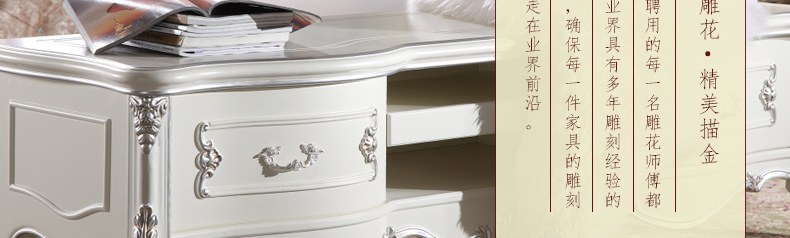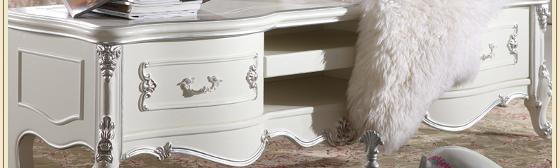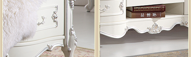 尚多家居 DG805象牙白+银箔做旧雕花 法式客厅 储物地柜