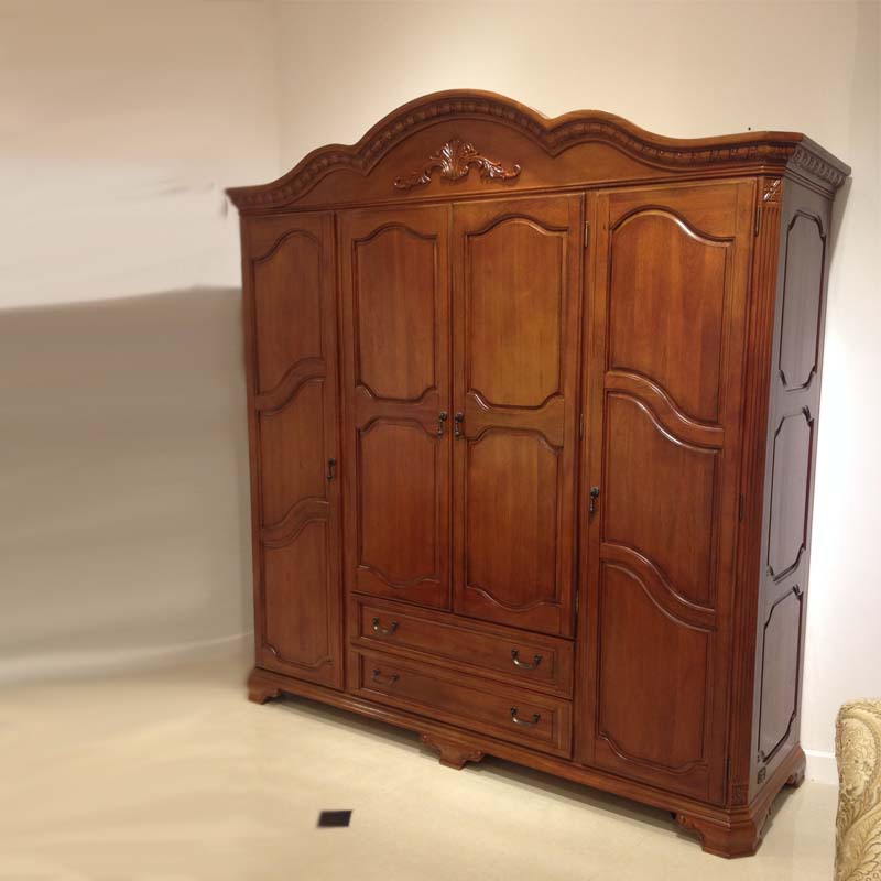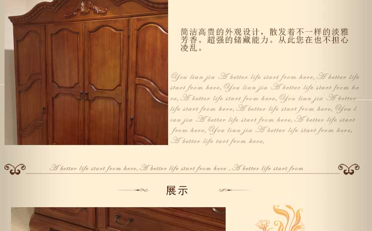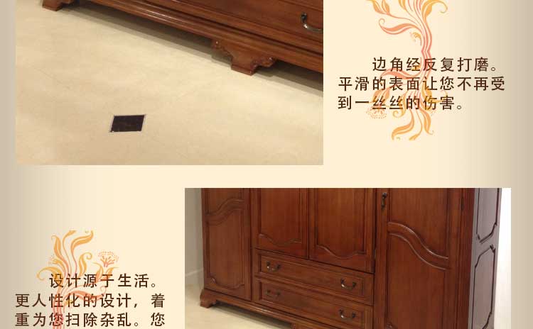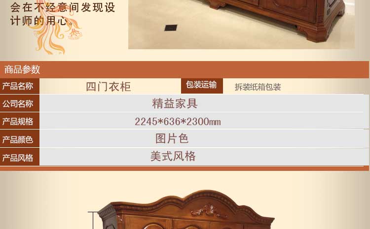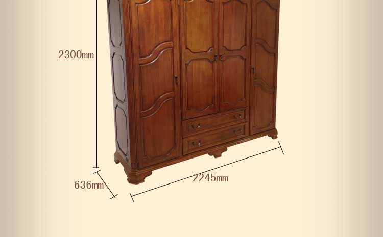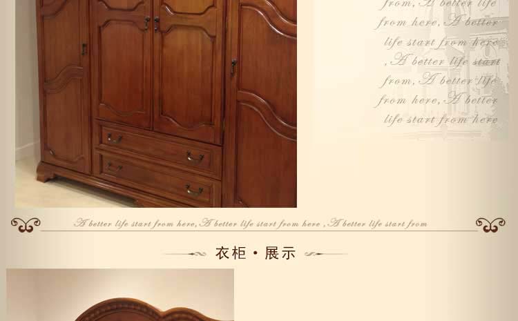 精益豪庭 美式衣柜推拉门美式实木移门大衣柜四门卧室组合230四门衣柜