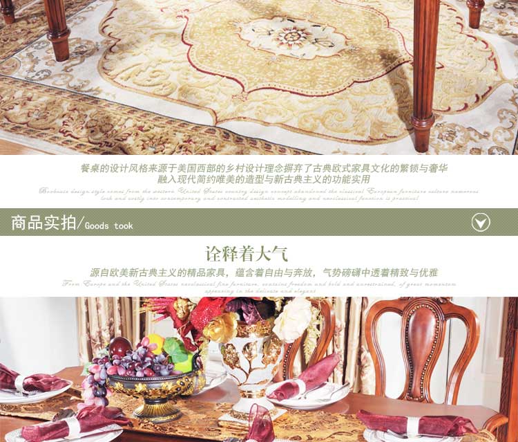精益豪庭 高档实木家具美式乡村实木餐桌子 欧式复古雕花西餐桌特价238餐桌