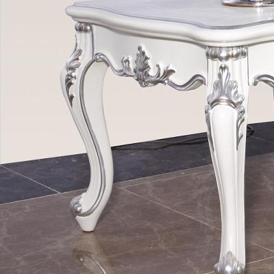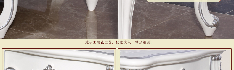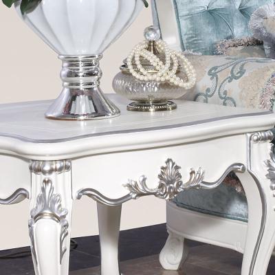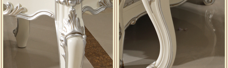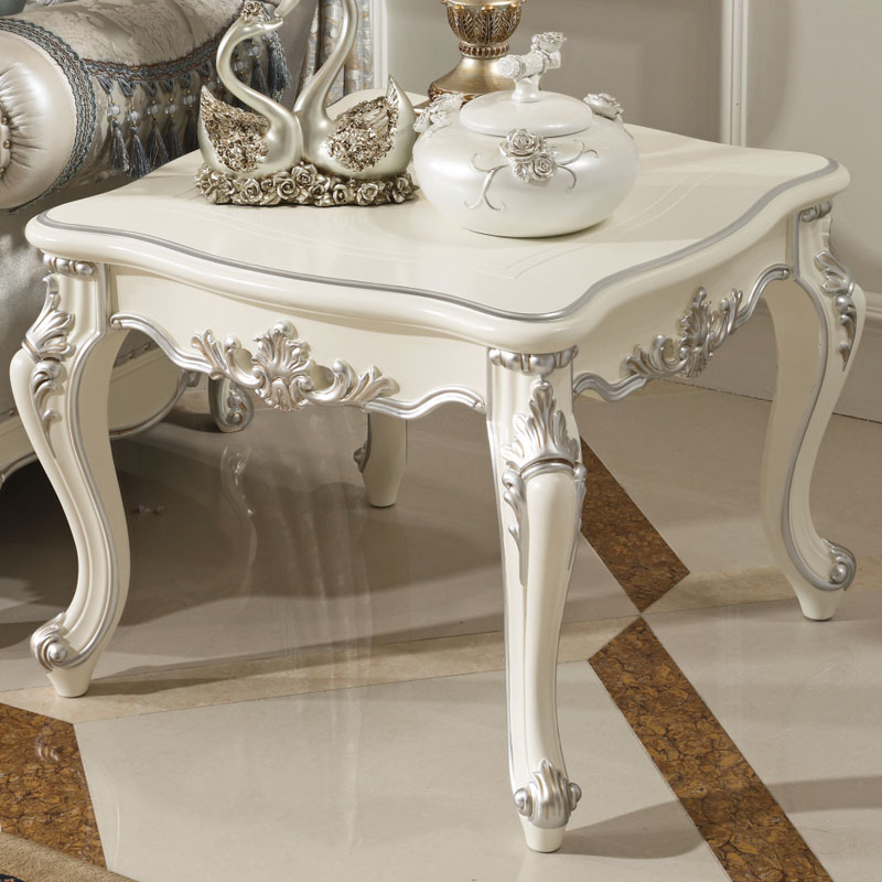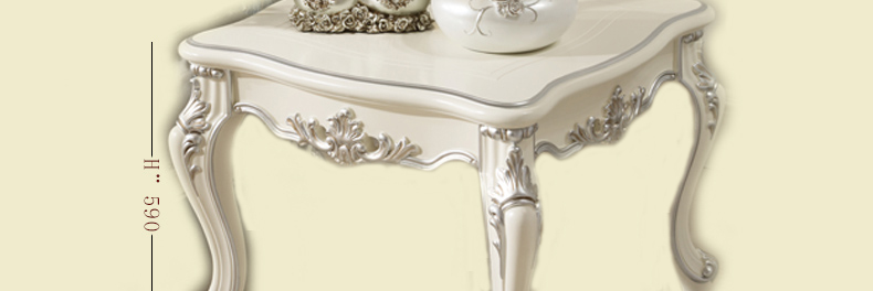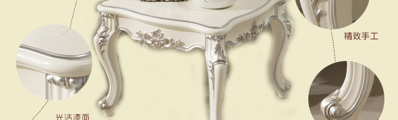 尚多家居 FJ801象牙白+银箔做旧雕花 法式 实木方几边几小桌子电话几