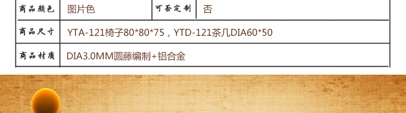 YTA-121椅子80*80*75 YTD-121茶几Dia60*50