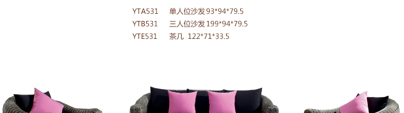 YTA531单人位沙发93*94*79.5 YTB531三人位沙发199*94*79.5 YTE531茶几122*71*33.5