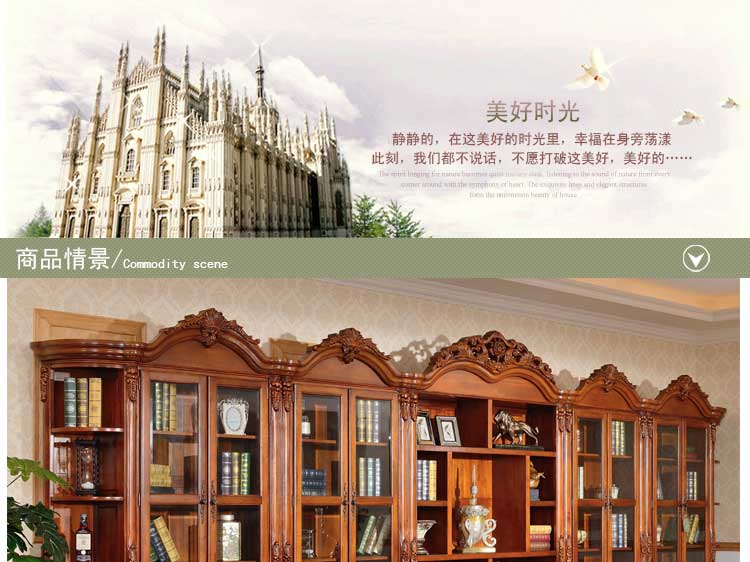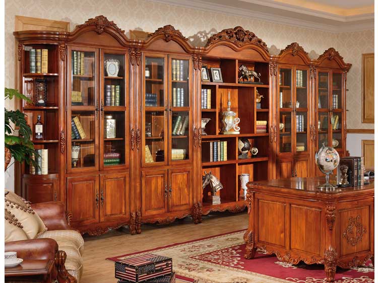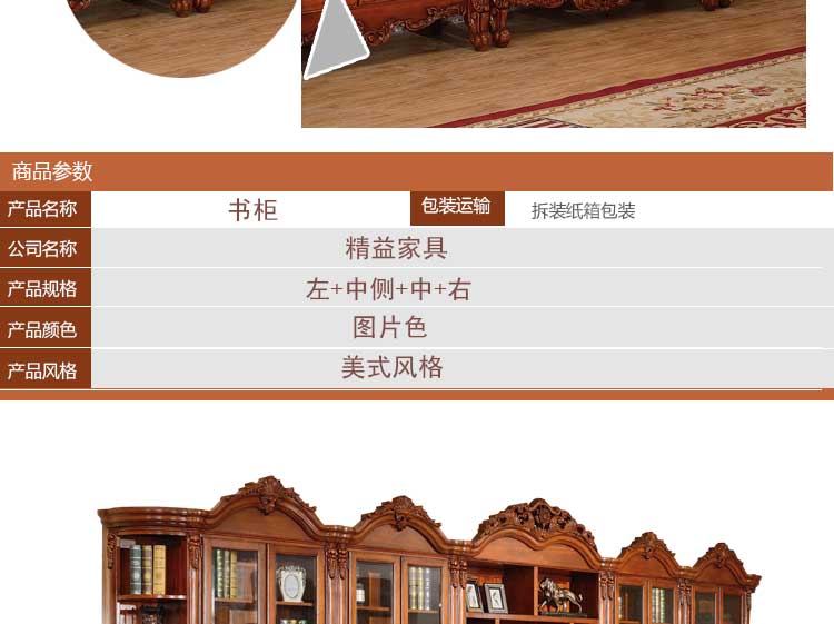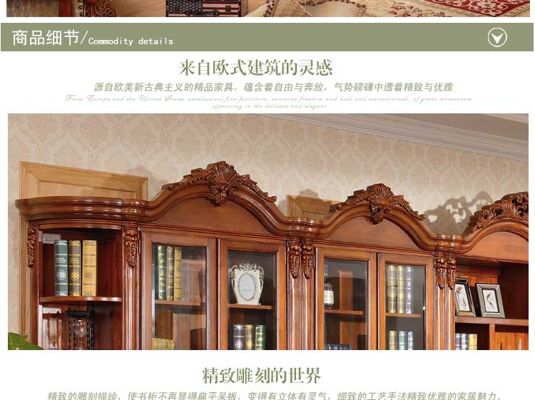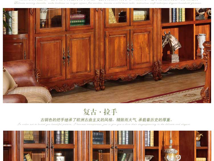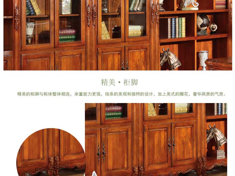 精益豪庭 美式书柜实木 单个书柜自由组合美式带门书橱书架880组合书柜