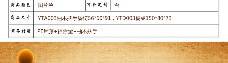 YTA003柚木扶手餐椅56*60*91 YTD003餐桌150*80*73