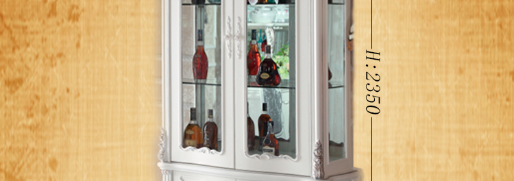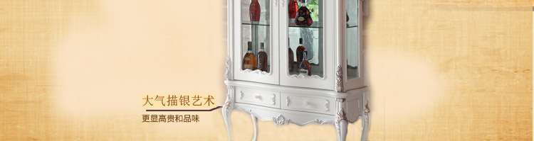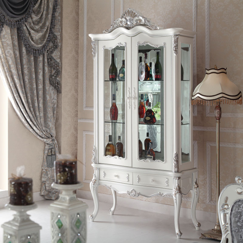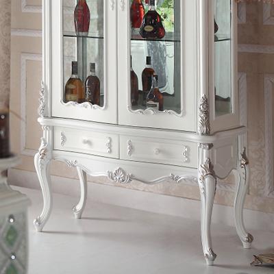 尚多家居 JG802象牙白+银箔做旧法式雕花 玻璃门双门酒柜装饰柜储物