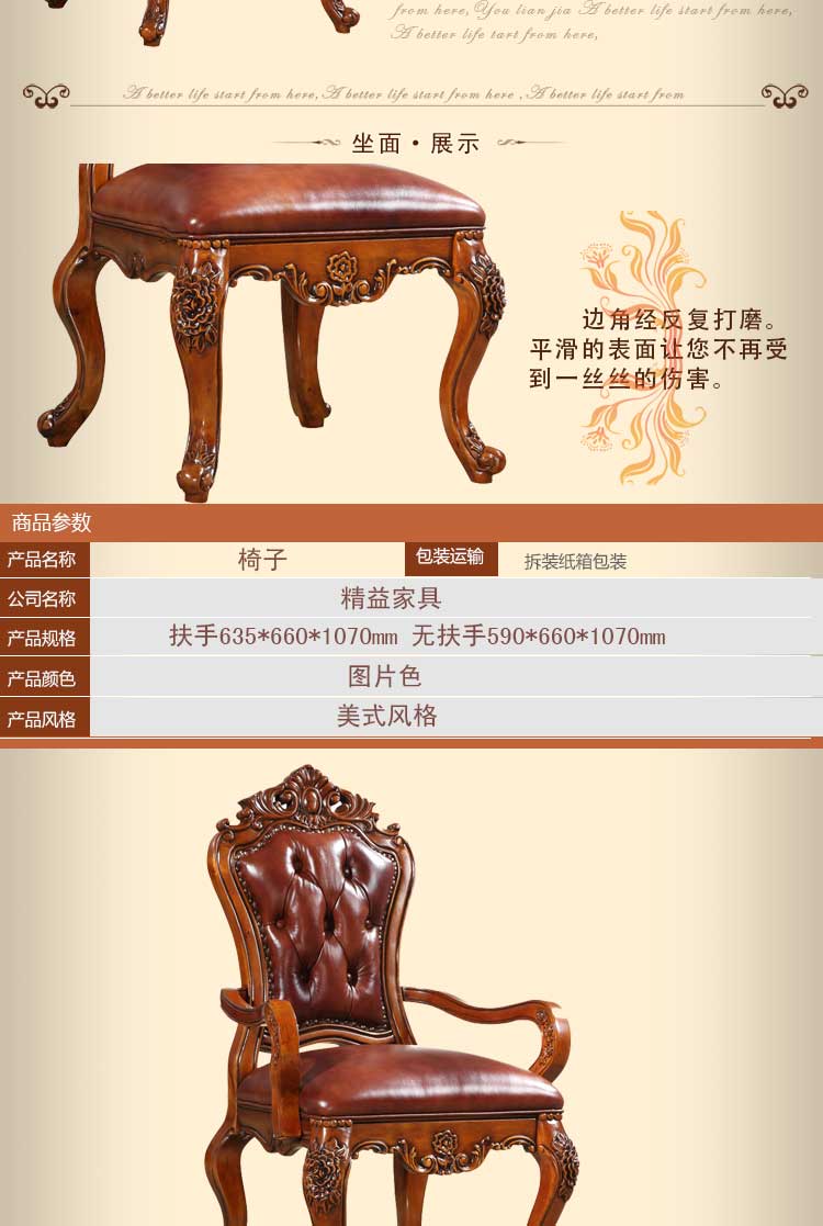 精益豪庭 美式全实木餐椅 美式扶手椅子 无扶手休闲书椅680椅子