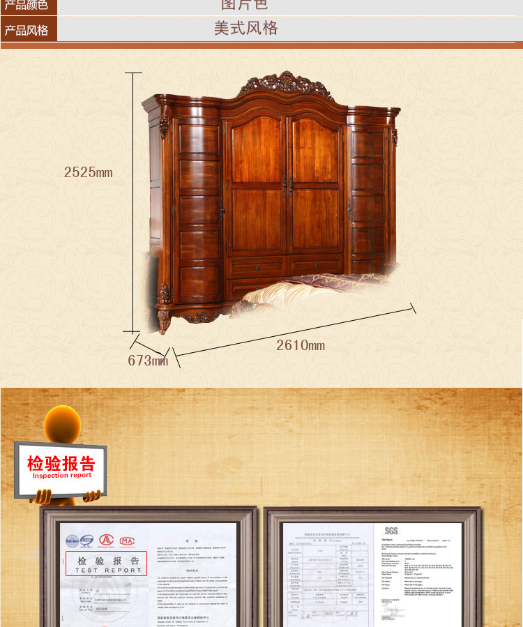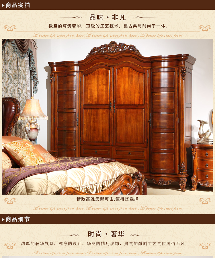 精益豪庭 卧室四门衣柜实木深色整体美式衣柜美式衣橱衣柜古典680四门衣柜
