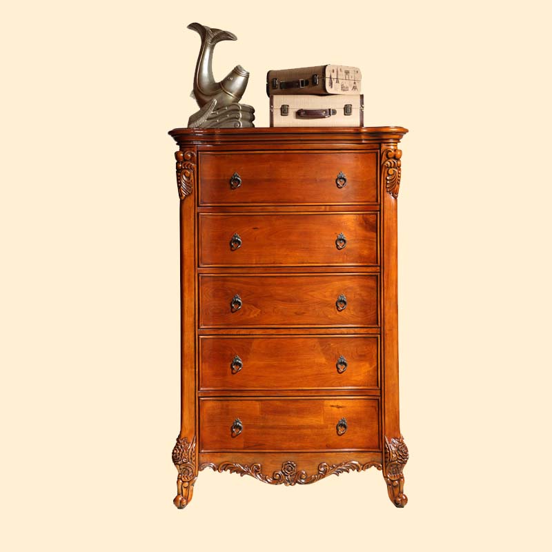 精益豪庭 美式实木五斗柜 复古欧式储物柜乡村家具卧室收纳柜680五斗柜