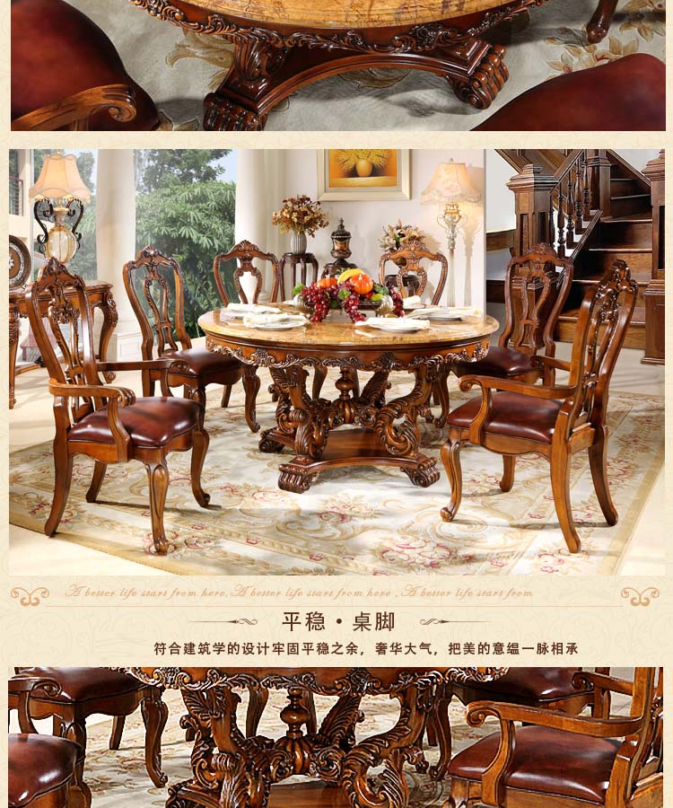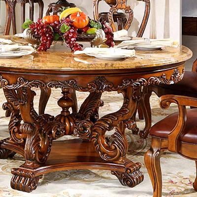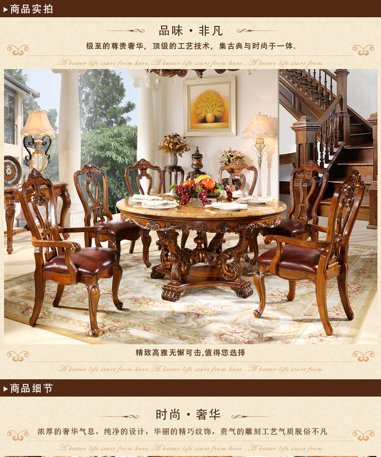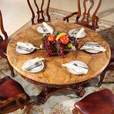 精益豪庭 美式欧式天然大理石餐桌 饭桌 全实木田园雕花圆形餐台680