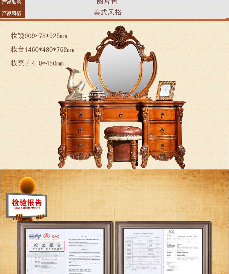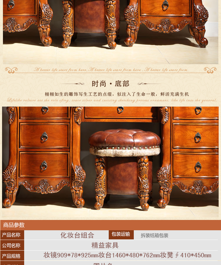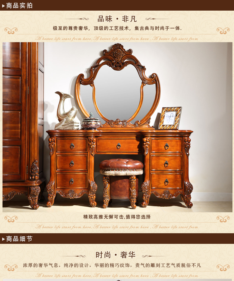 精益豪庭 美式带抽梳妆台 奢华美式雕花田园大化妆桌现代 特价680妆台