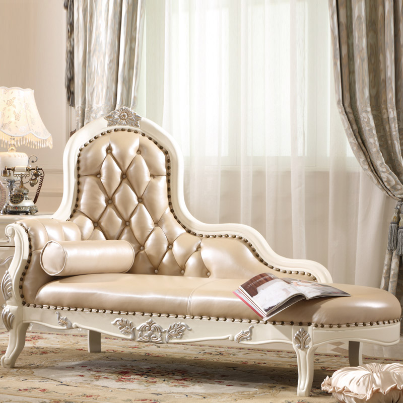 尚多家居 GF801象牙白+银箔做旧法式雕花 贵妃椅躺椅贵妃榻