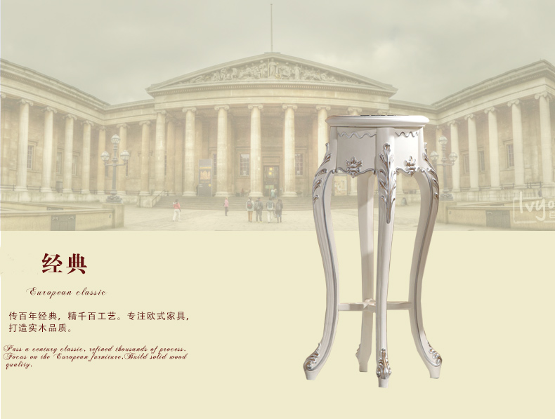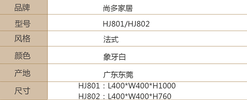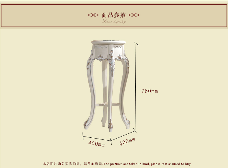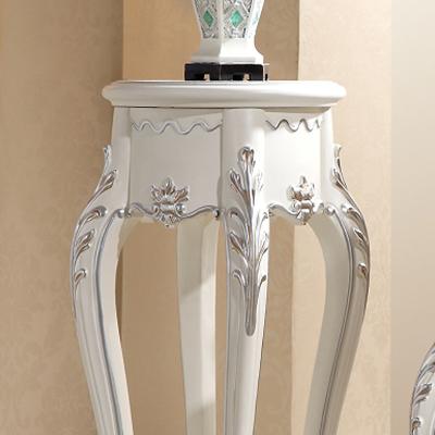 尚多家居 HJ801、HJ802象牙白+银箔做旧法式雕花 落地式大小花架装饰架电话架置物架