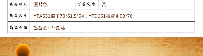 YTA651 椅子 70*61.5*94 YTD651 餐桌 ¢90*76