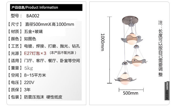 泊图灯饰 新款现代简约玻璃吊灯 餐厅吊灯 三头吊灯BA002包邮