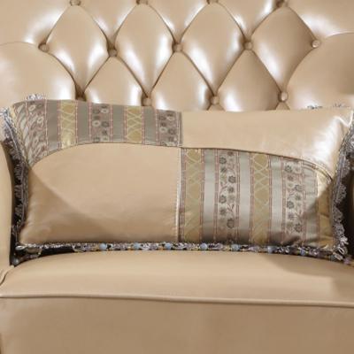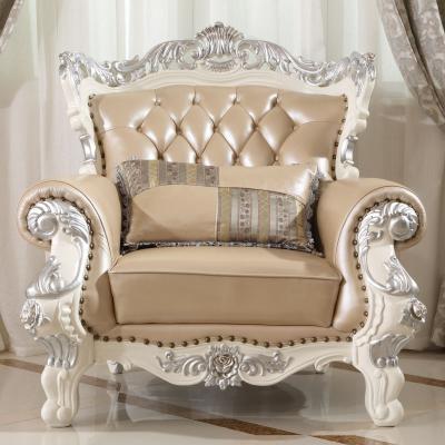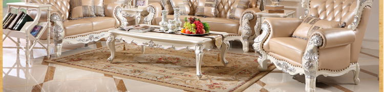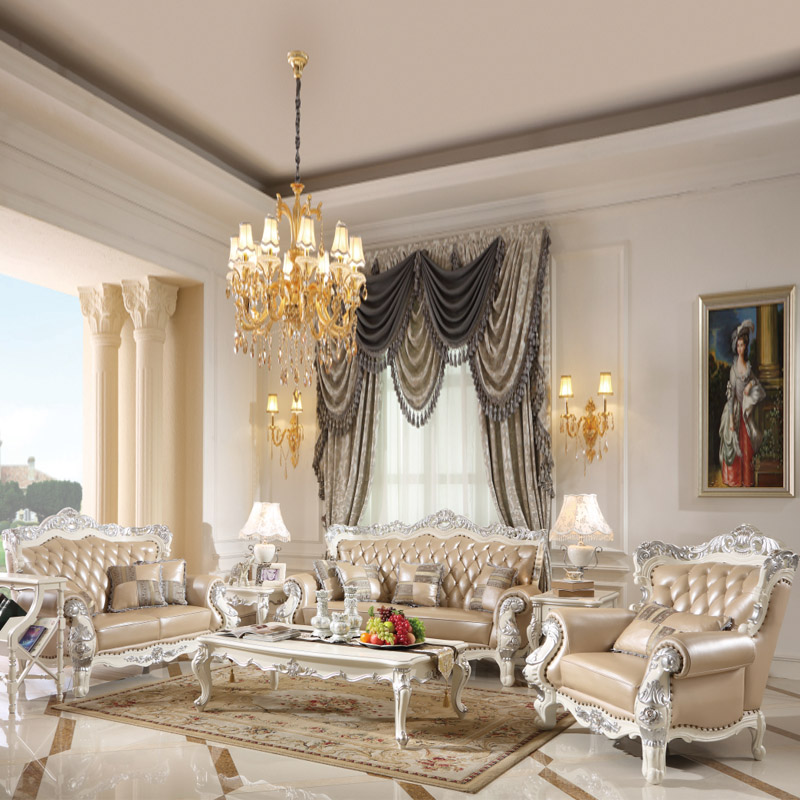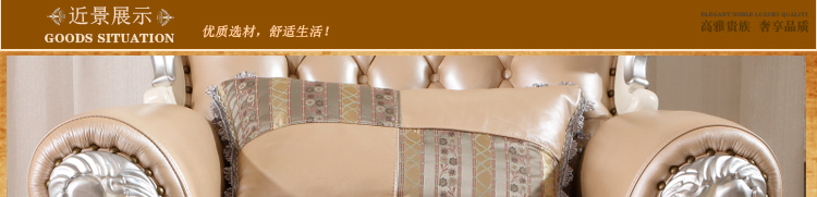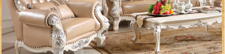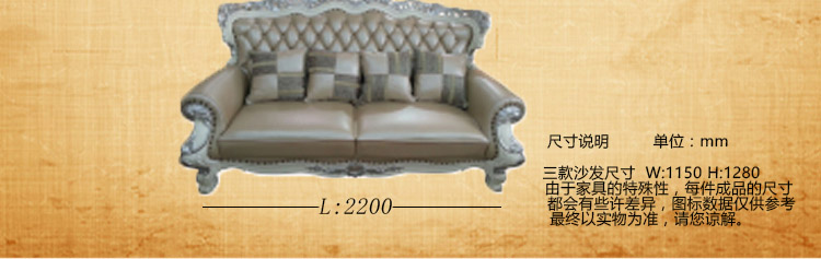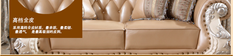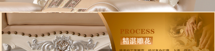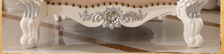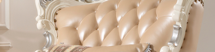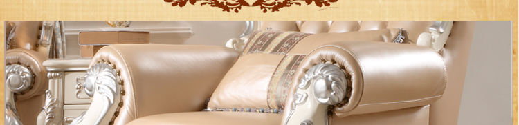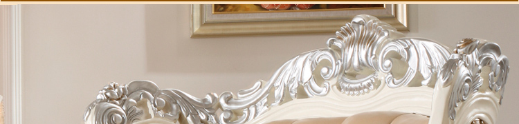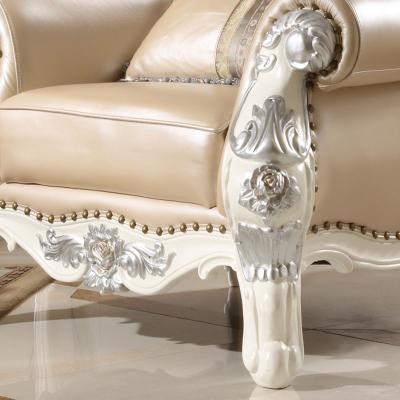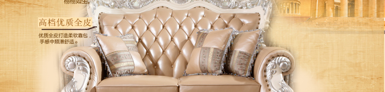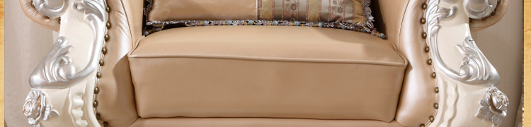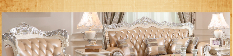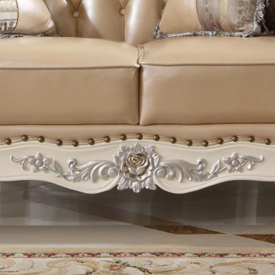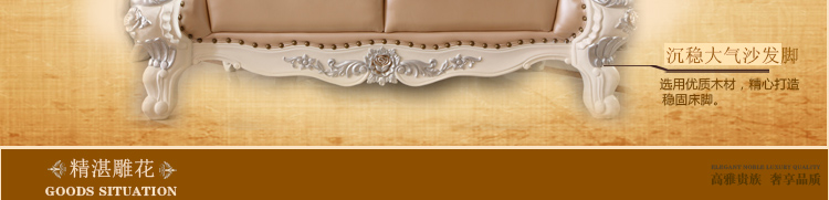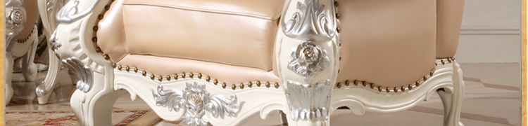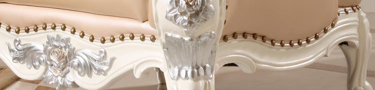 尚多家居 SF803象牙白+银箔做旧法式雕花 实木皮艺组合沙发