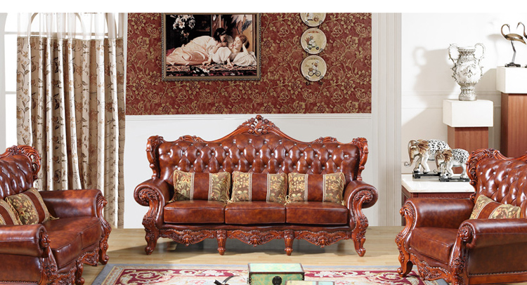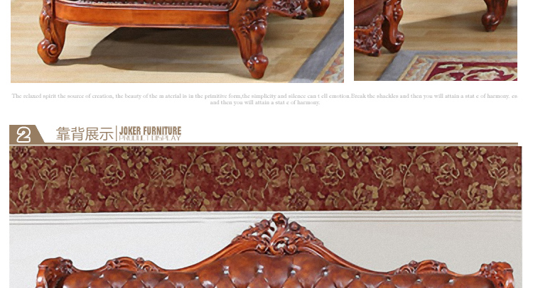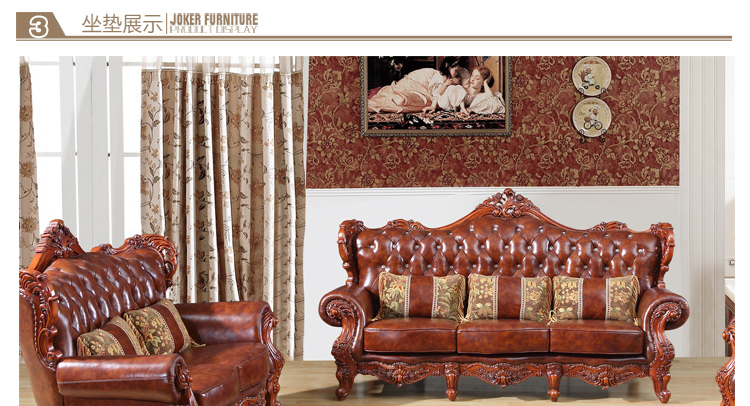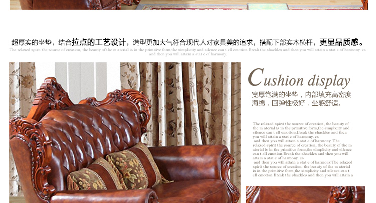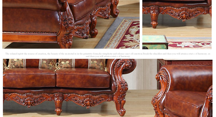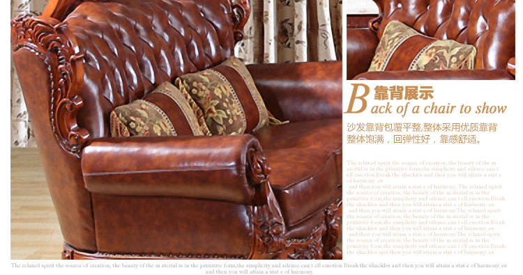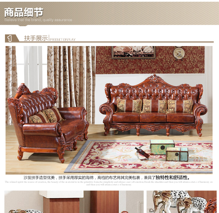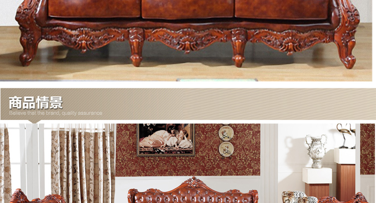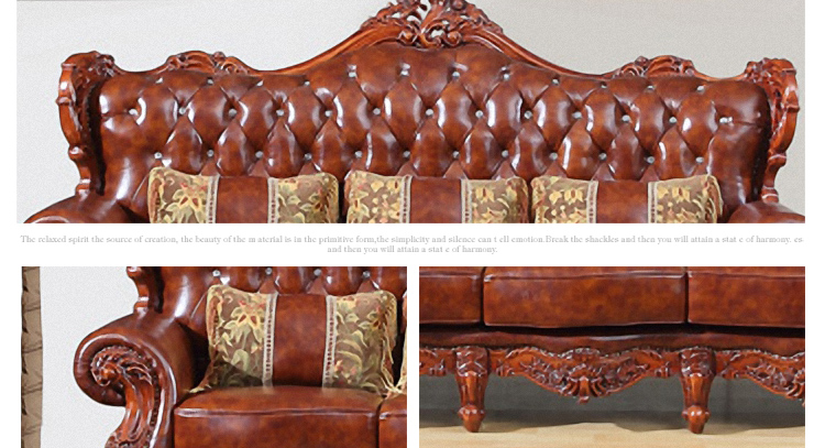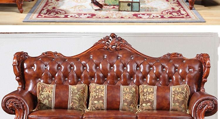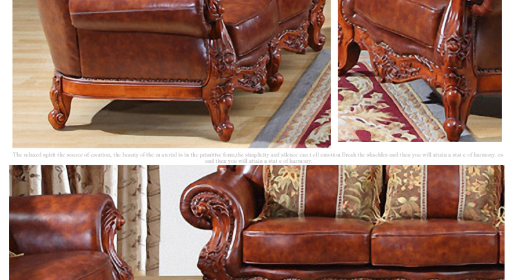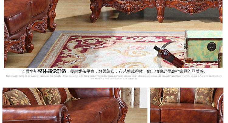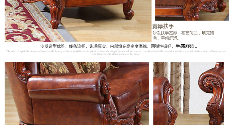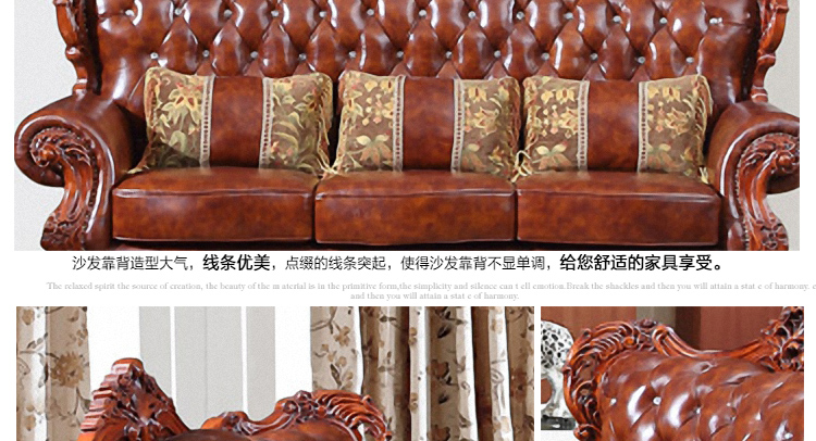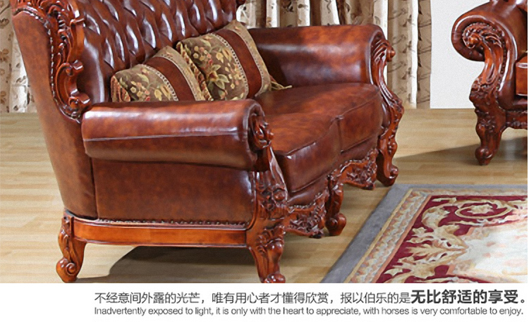 沙发质量好,框架牢固,雕花也很漂亮,皮质柔软,坐上去很舒服,家人都很喜欢