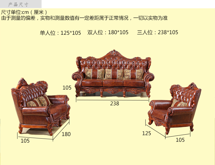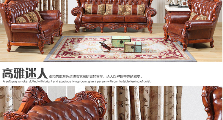 品语 欧式真皮沙发头层牛皮皮艺大小户型客厅组合沙发H019真皮