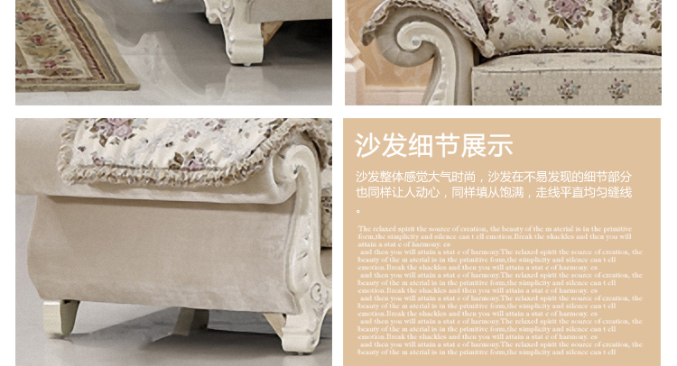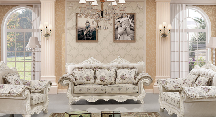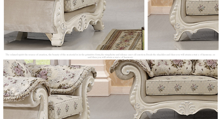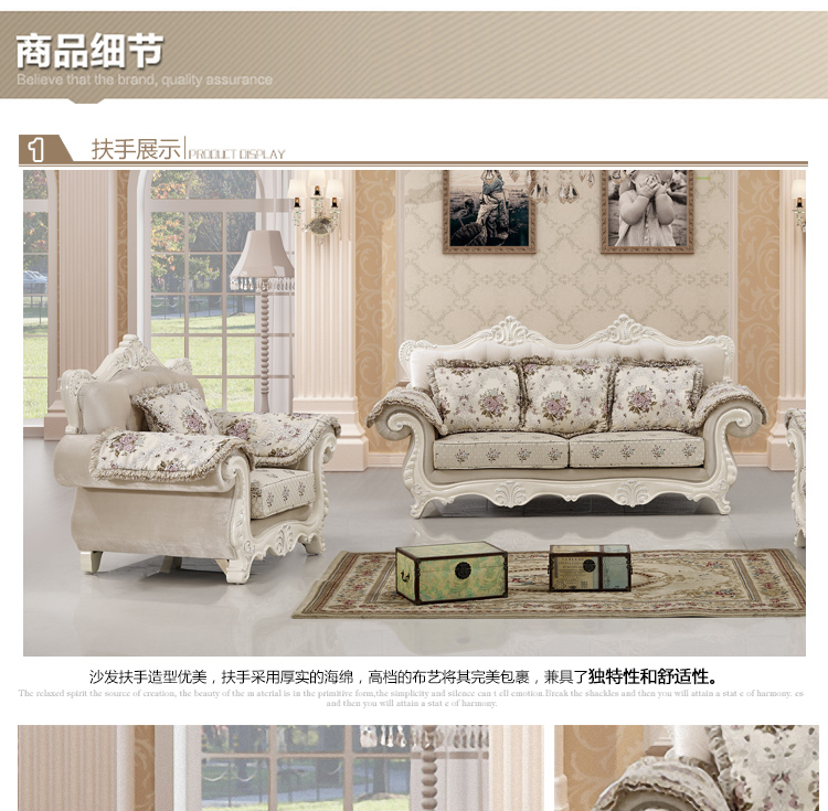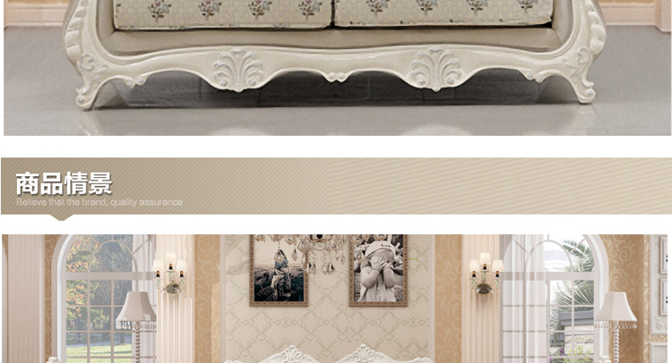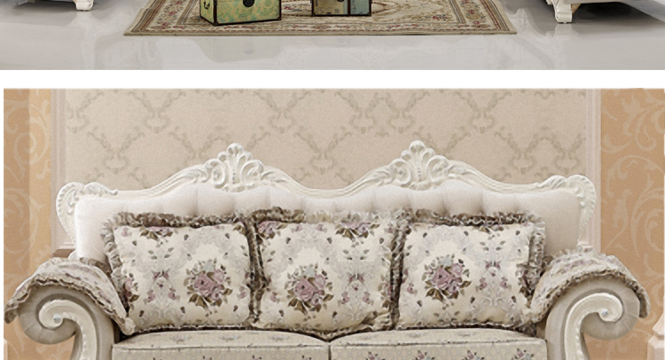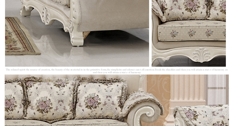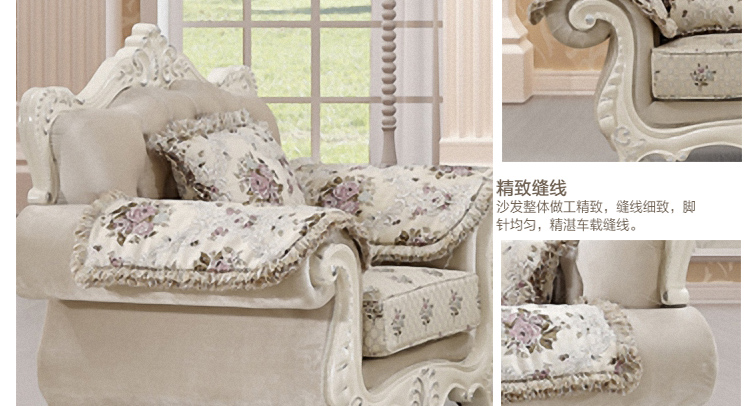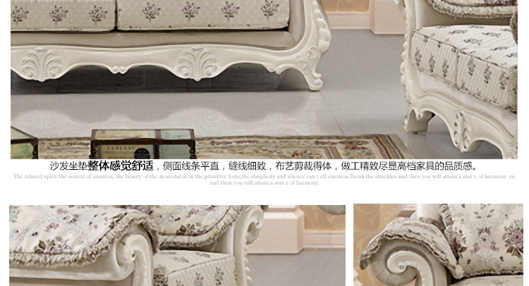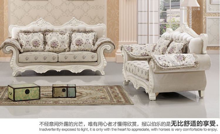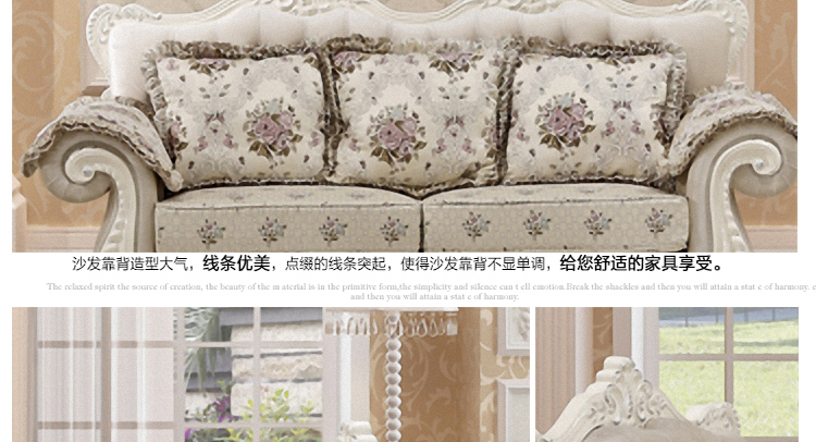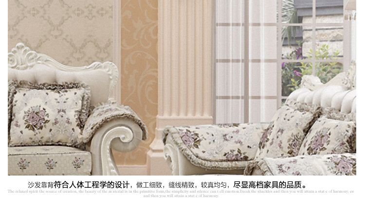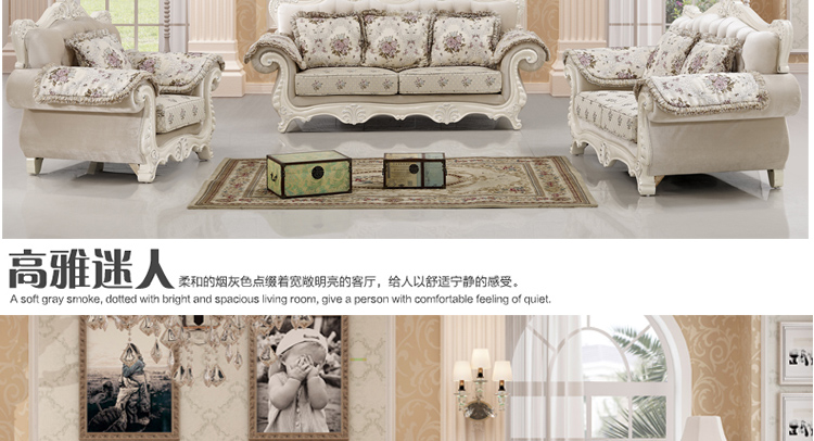 品语 欧式沙发实木雕花 客厅沙发组合布艺沙发时尚H026