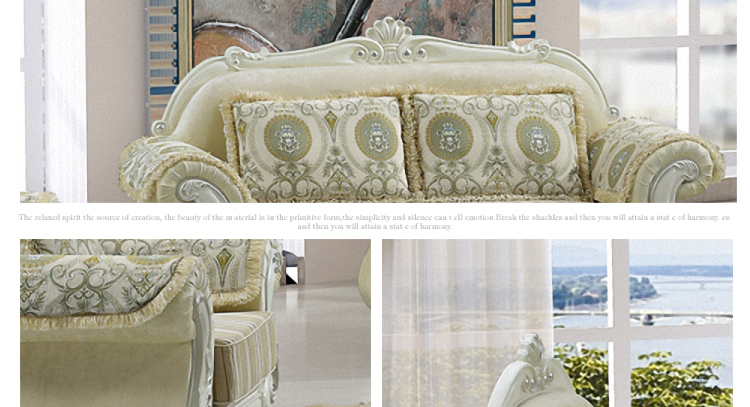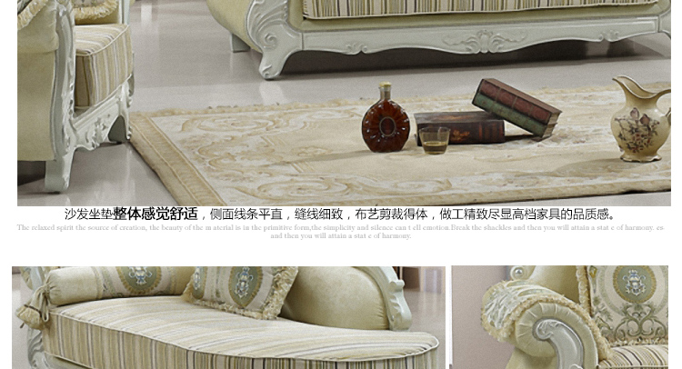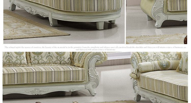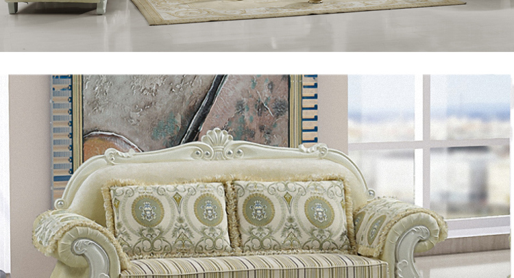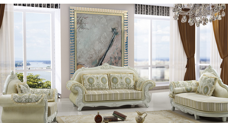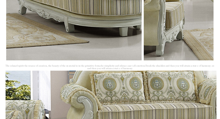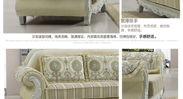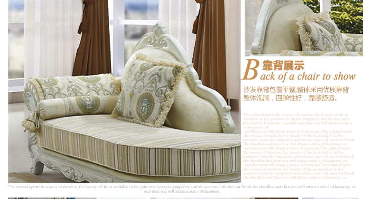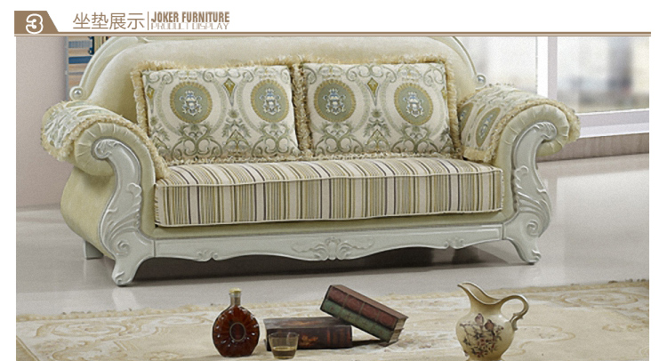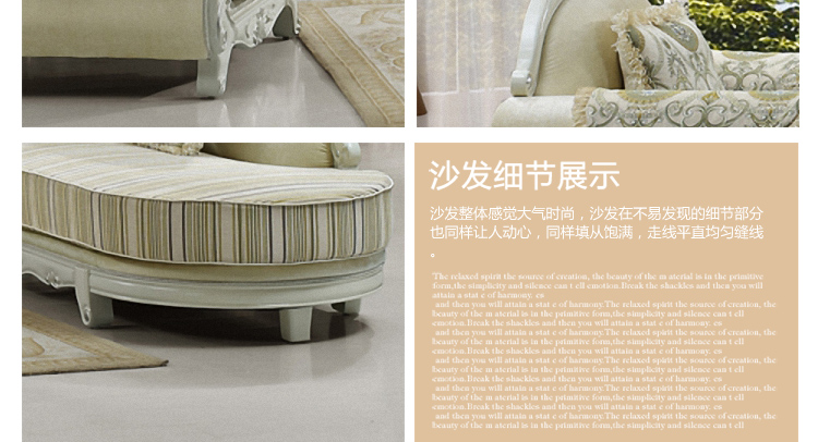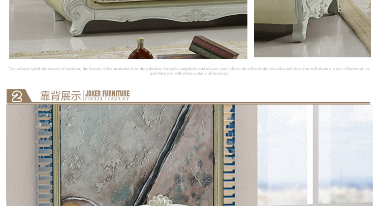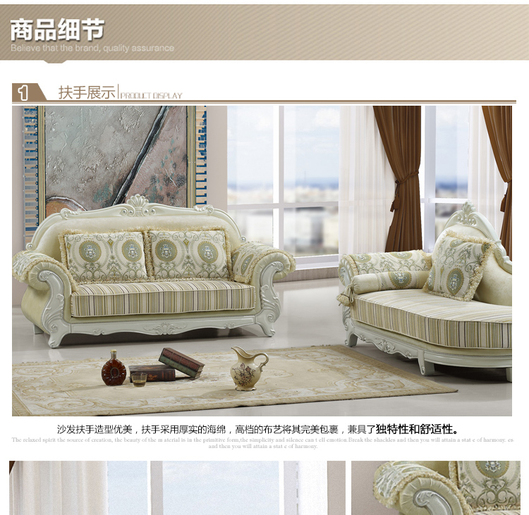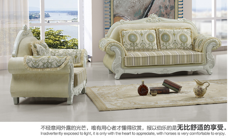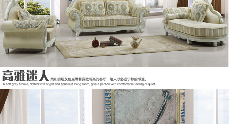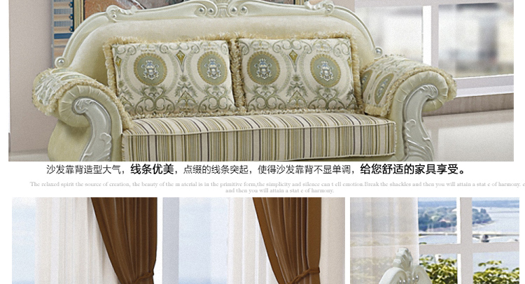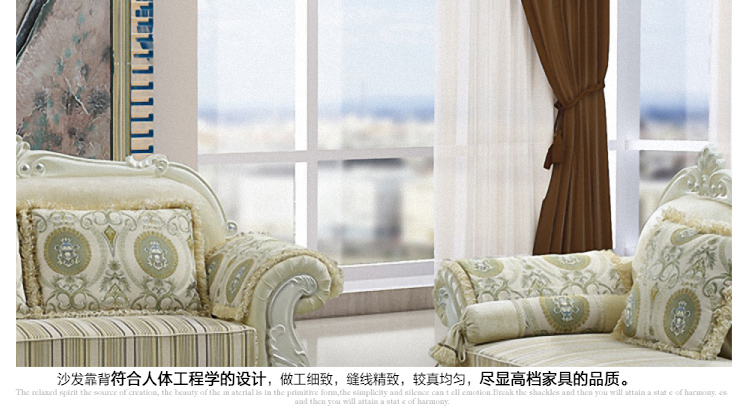 款式很大气的欧式沙发,用料挺好的感觉挺结实的,整体做工也是很不错的。和我家风格很搭配的