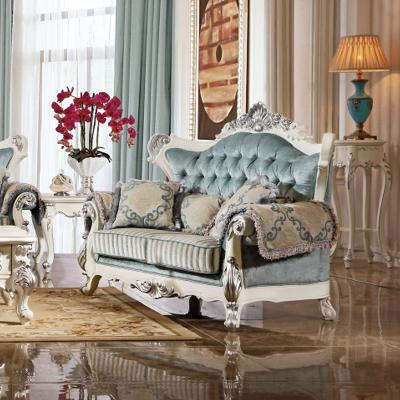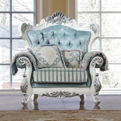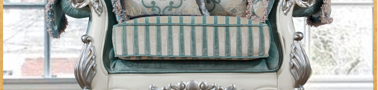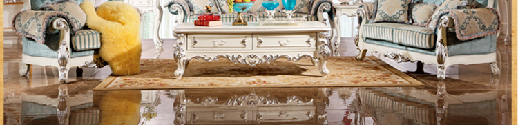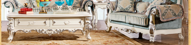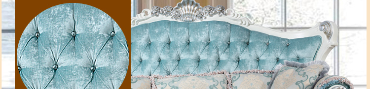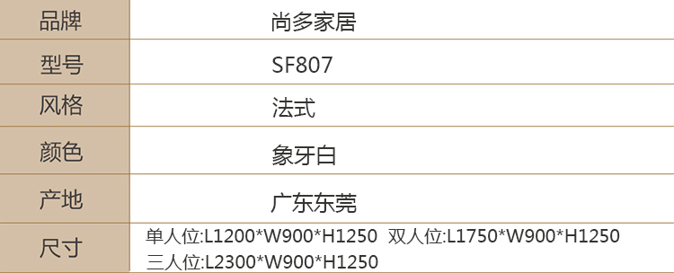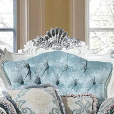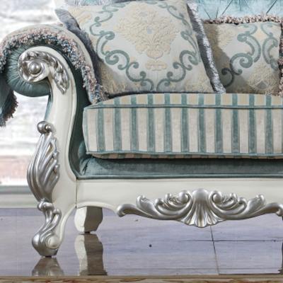 尚多家居 SF807象牙白+银箔做旧法式雕花 实木布艺组合沙发