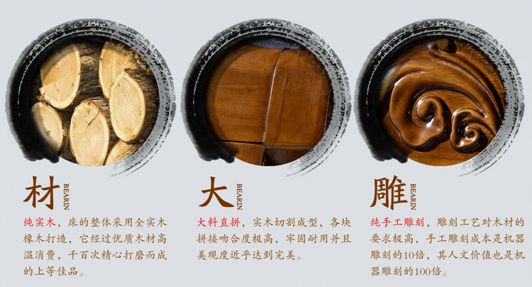实木品质,精细手工雕花,尽显大气优雅,传承经典艺,其耐腐耐湿,质地坚韧,有弹性,抗压性、抗弯性强!