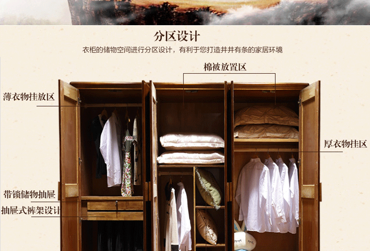 展优全实木系列三/四/五/六门衣柜 现代中式风格系列实木衣柜ZY928