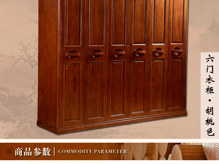 展优全实木系列六门衣柜 现代中式风格系列实木衣柜ZY509