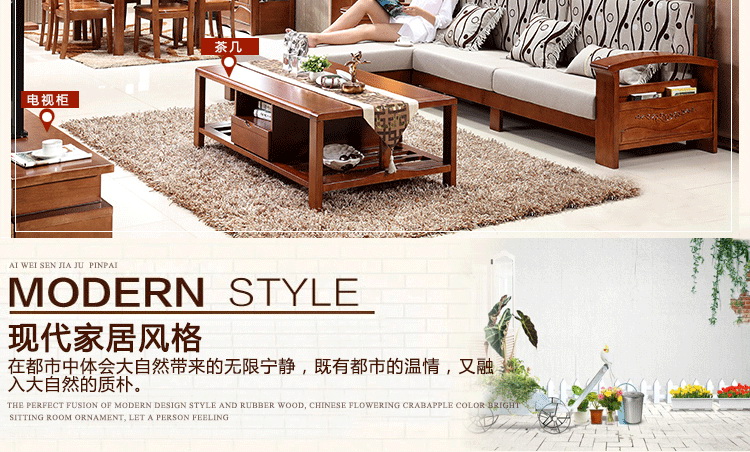 • 三人位+转角位+茶几(榉木色)