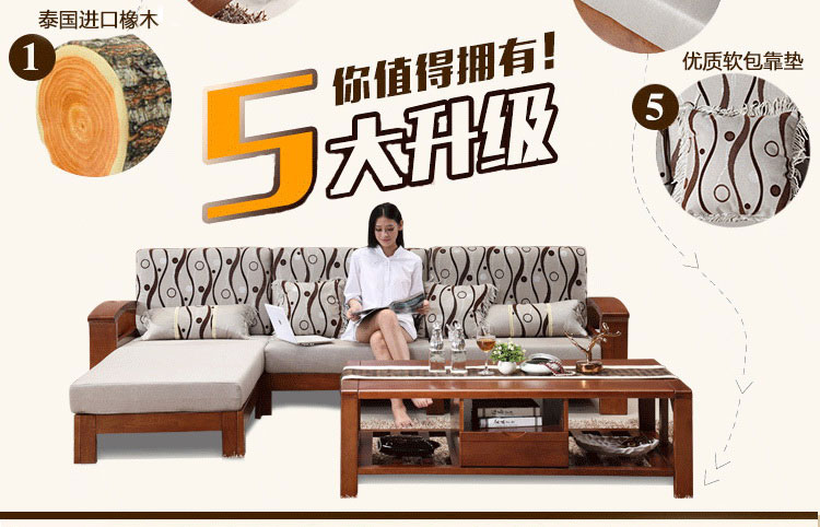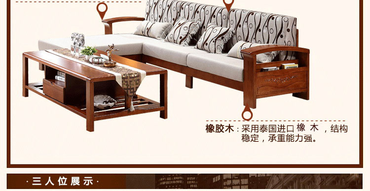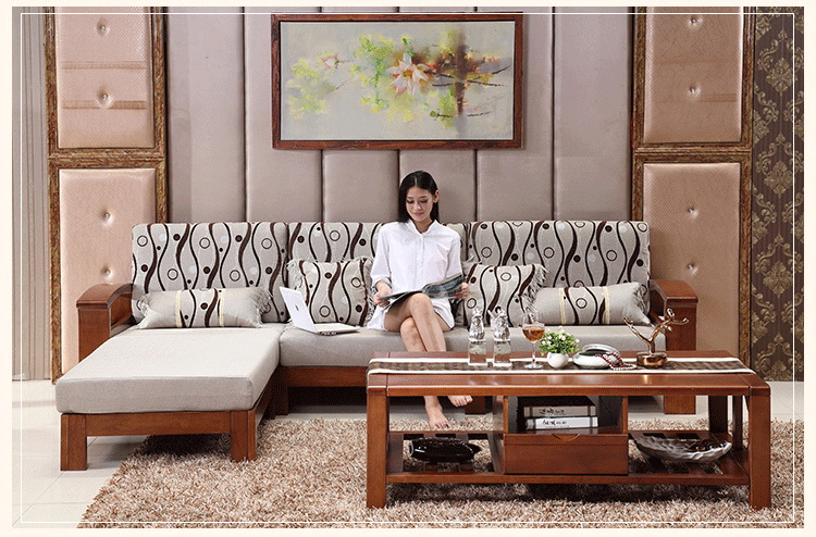 展优系列实木框架转角沙发组合 现代中式风格实用沙发ZY807