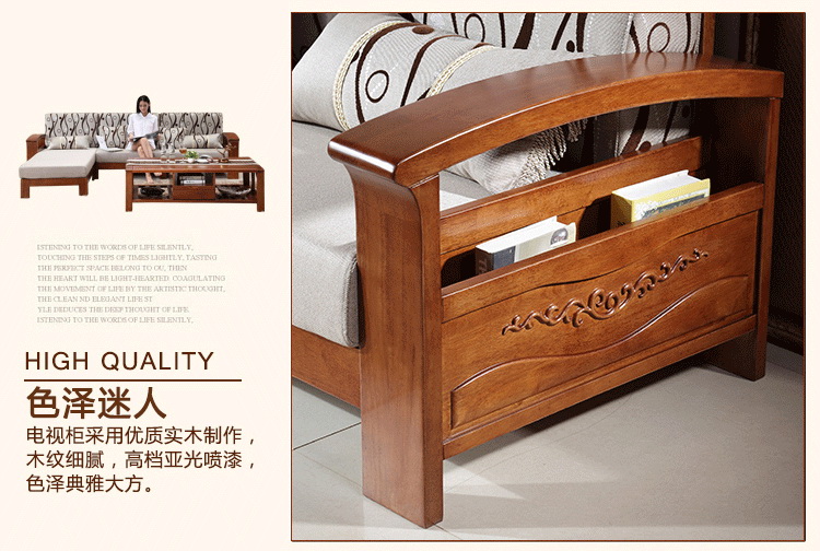 实木的沙发颜色很漂亮,做工也比较好,很结实耐用。