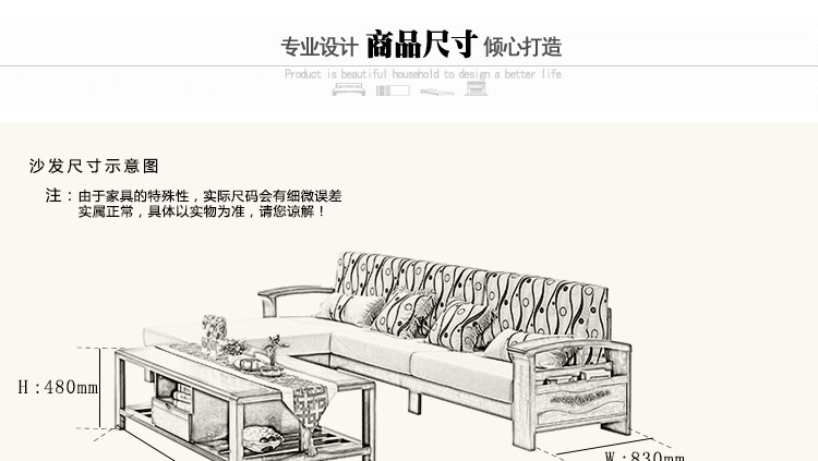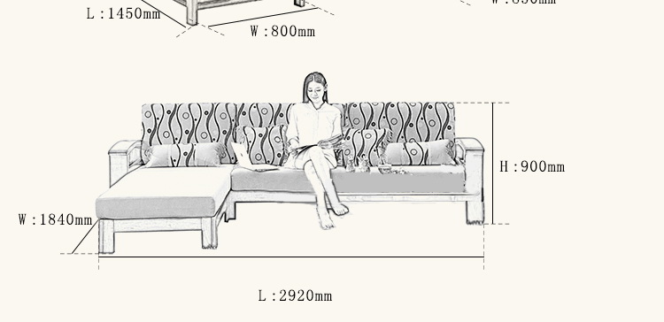外围尺寸: 沙发: 2920*1840*900 茶几: 1450*800*480
