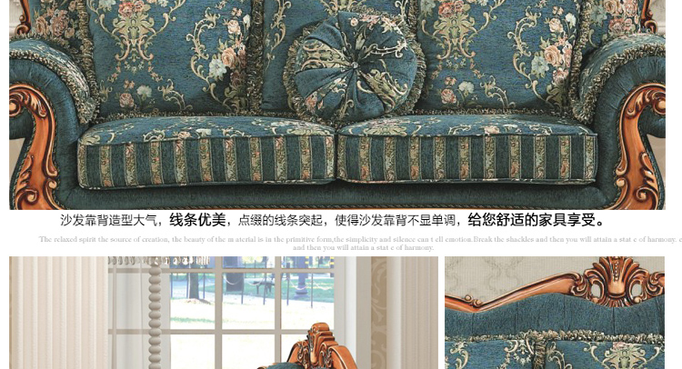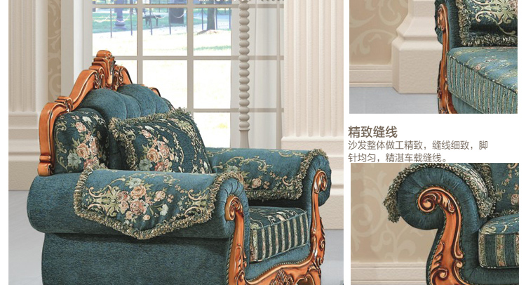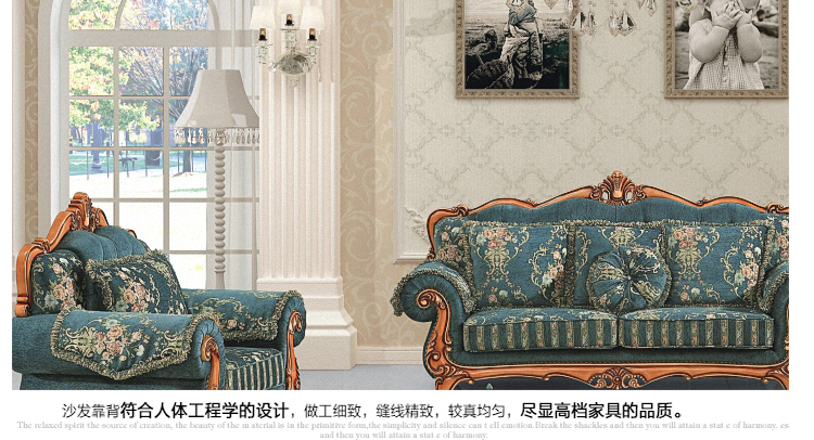 是我喜欢的沙发,欧式法式造型,典雅大气,和我家的简欧装修风格一致,坐垫厚实
