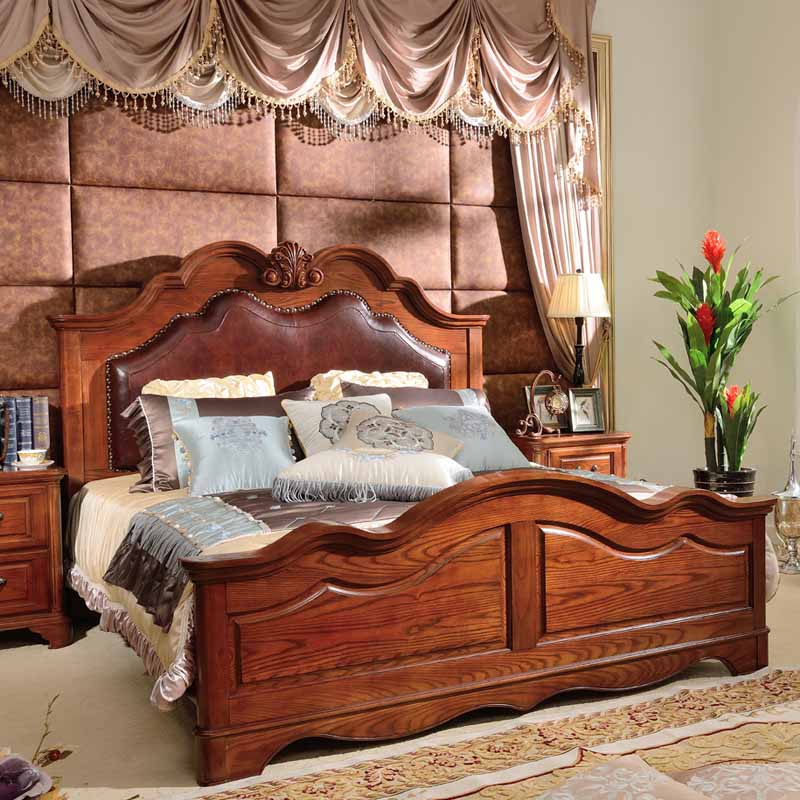 精益豪庭 实木家具 美式新古典实木床1.8m 卧室美式双人床338
