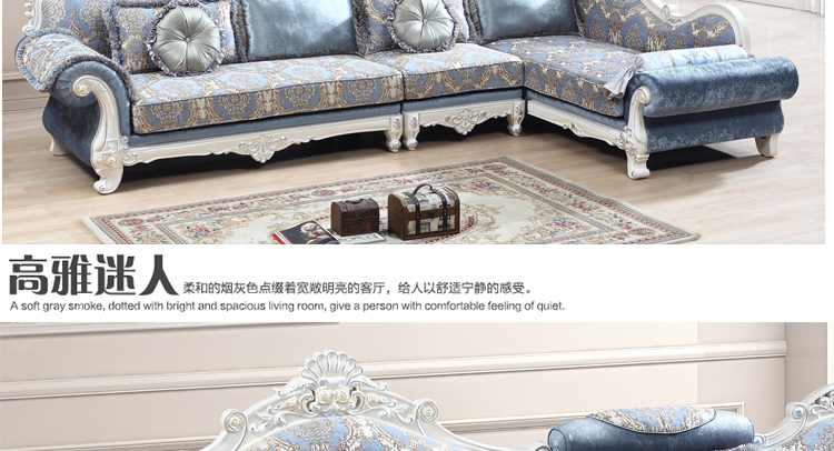 品语 欧式布艺沙发组合 L型简欧转角沙发 精转H013