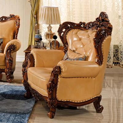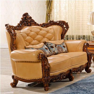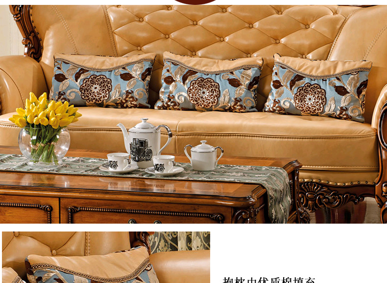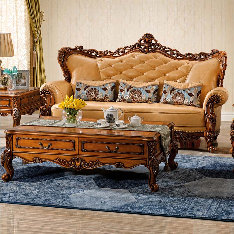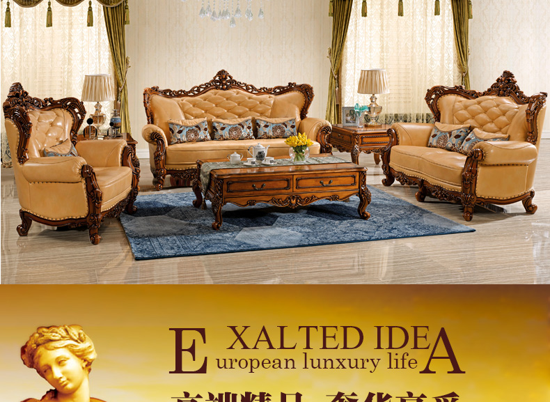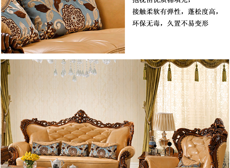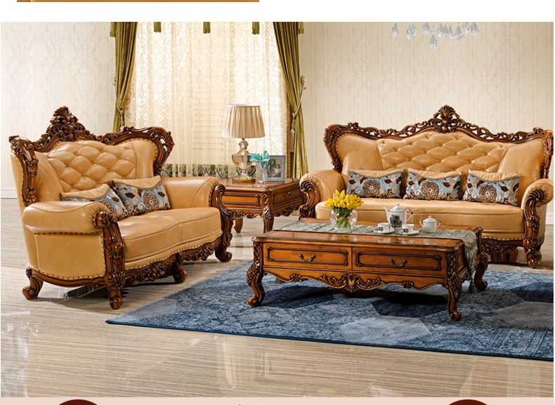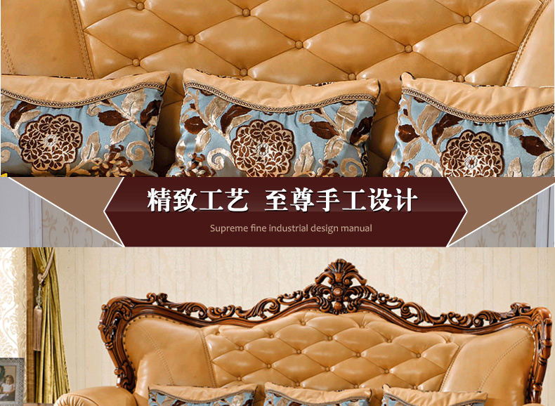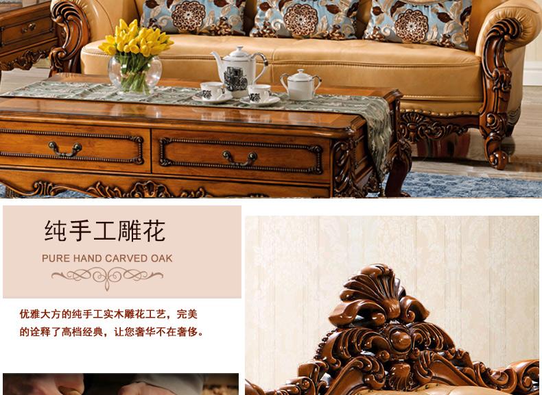 艾玛尼 欧式新款实木真皮结合沙发实木雕花百搭型客厅沙发组合M17