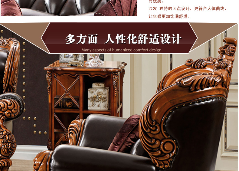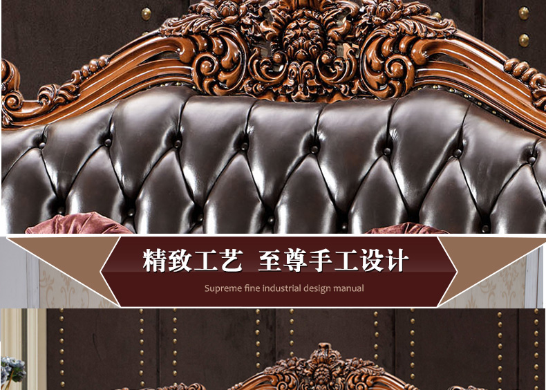 结实牢固,精美流畅的雕花,线条优雅,经典欧式风格,细腻真皮,柔软舒适, 精美绝伦的造型,细腻无限的立体雕花,贵族气质的颜色,呈现出一种高贵浪漫的色彩,经久耐用。
