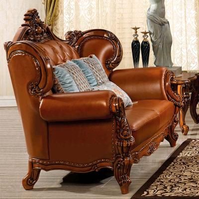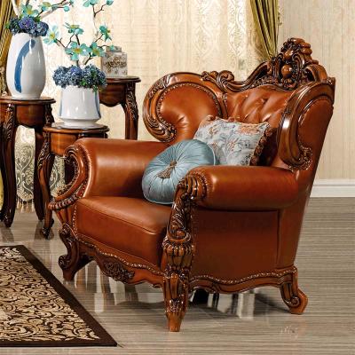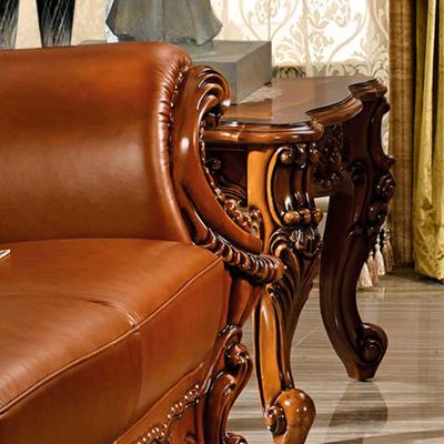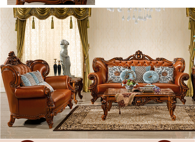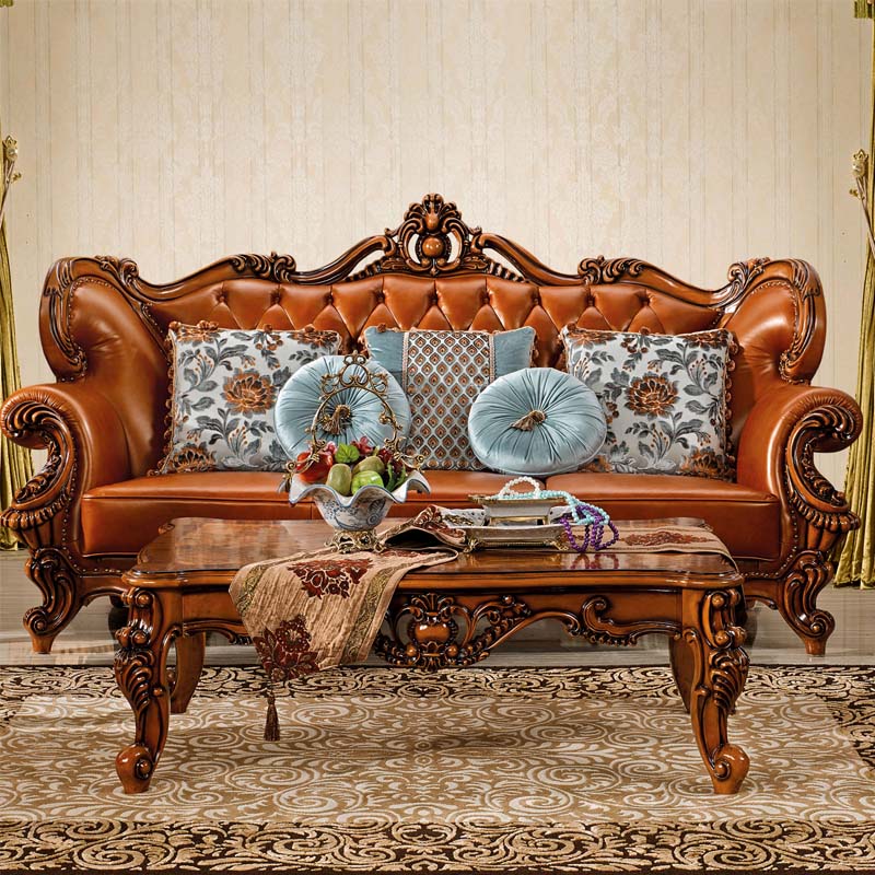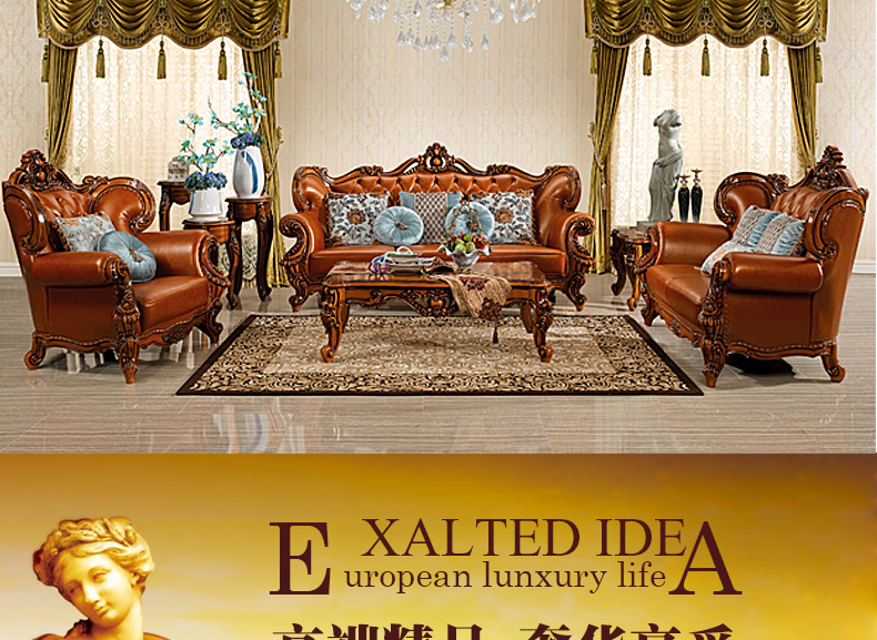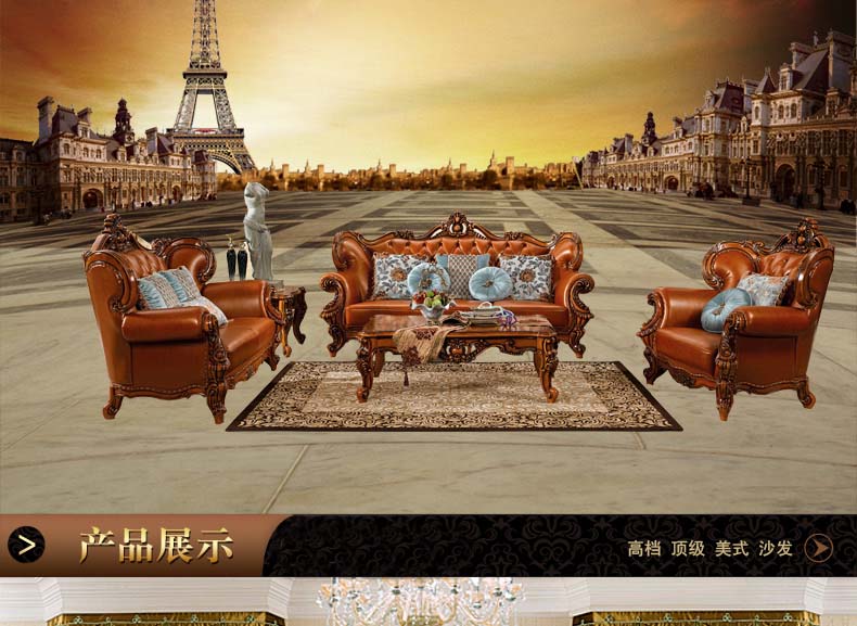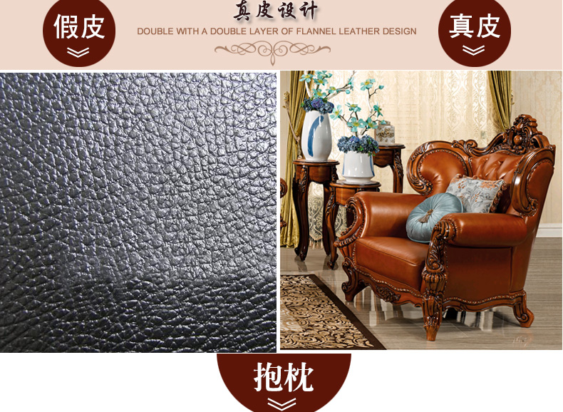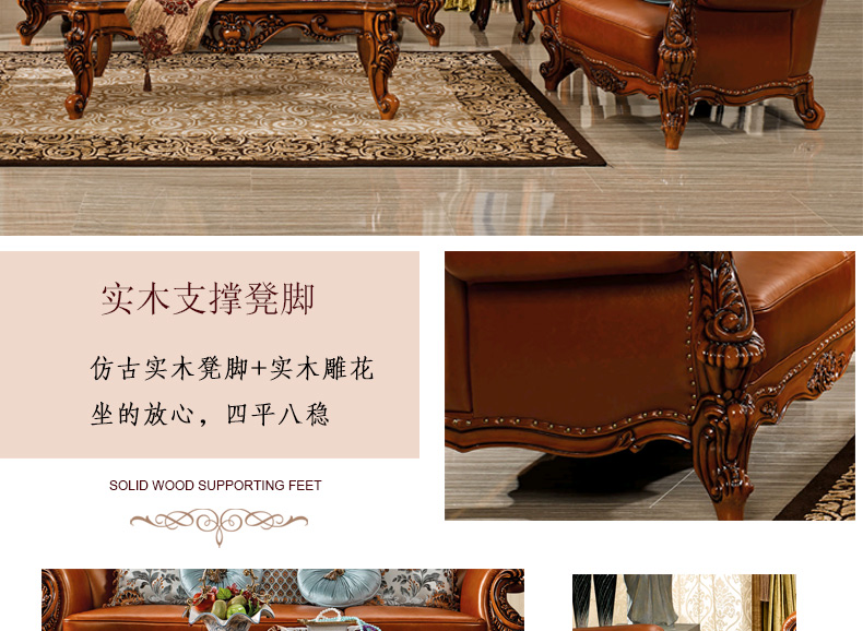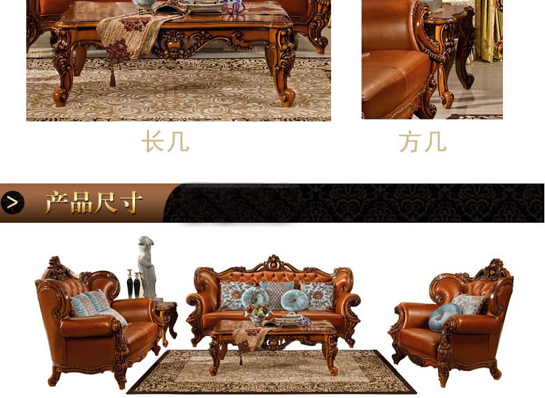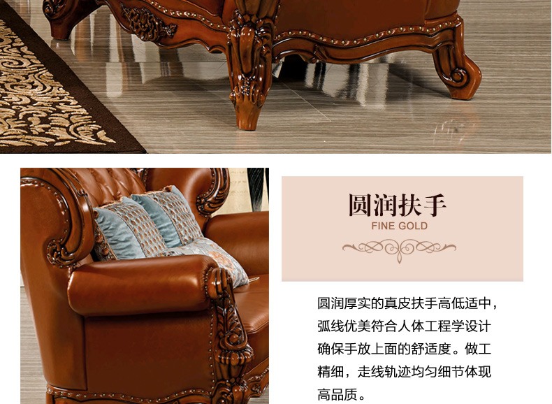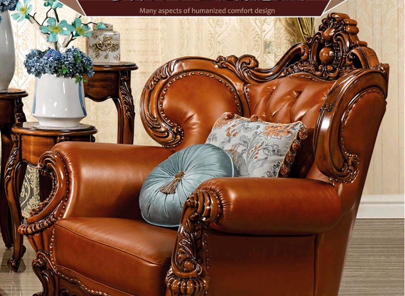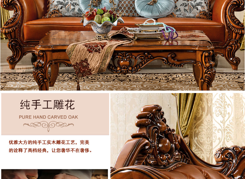 艾玛尼 欧式新款沙发组合实木真皮结合沙发组合经典雕花沙发D13