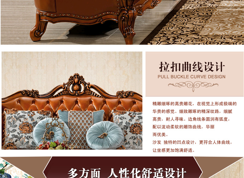 结实牢固,精美流畅的雕花,线条优雅,经典欧式风格,细腻真皮,柔软舒适, 精美绝伦的造型,细腻无限的立体雕花,贵族气质的颜色,呈现出一种高贵浪漫的色彩,经久耐用。