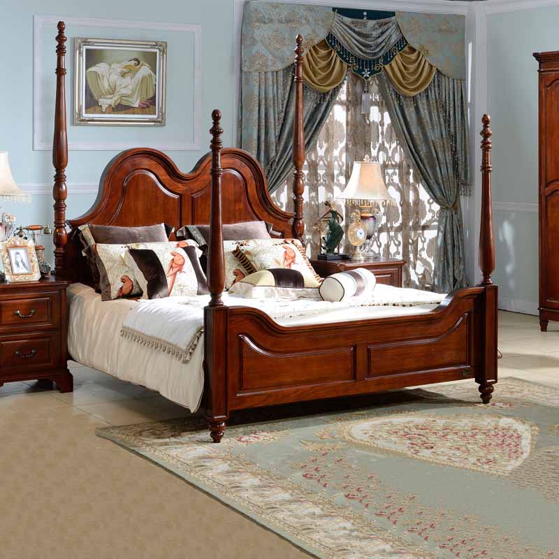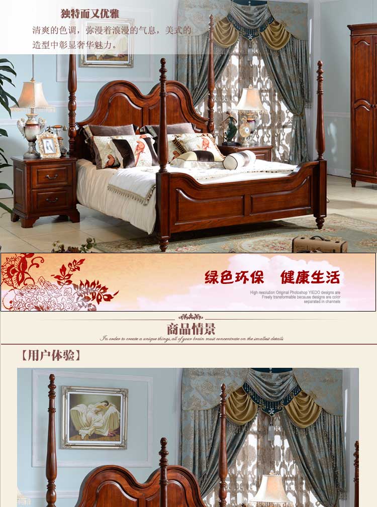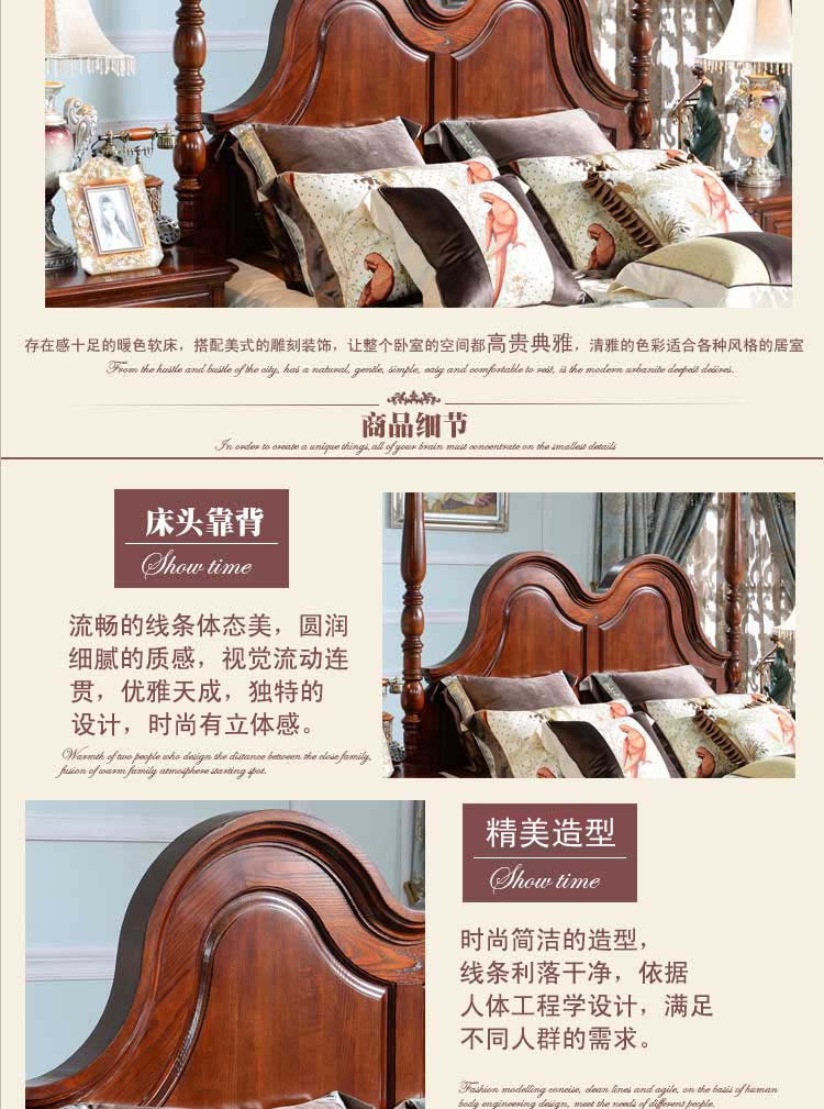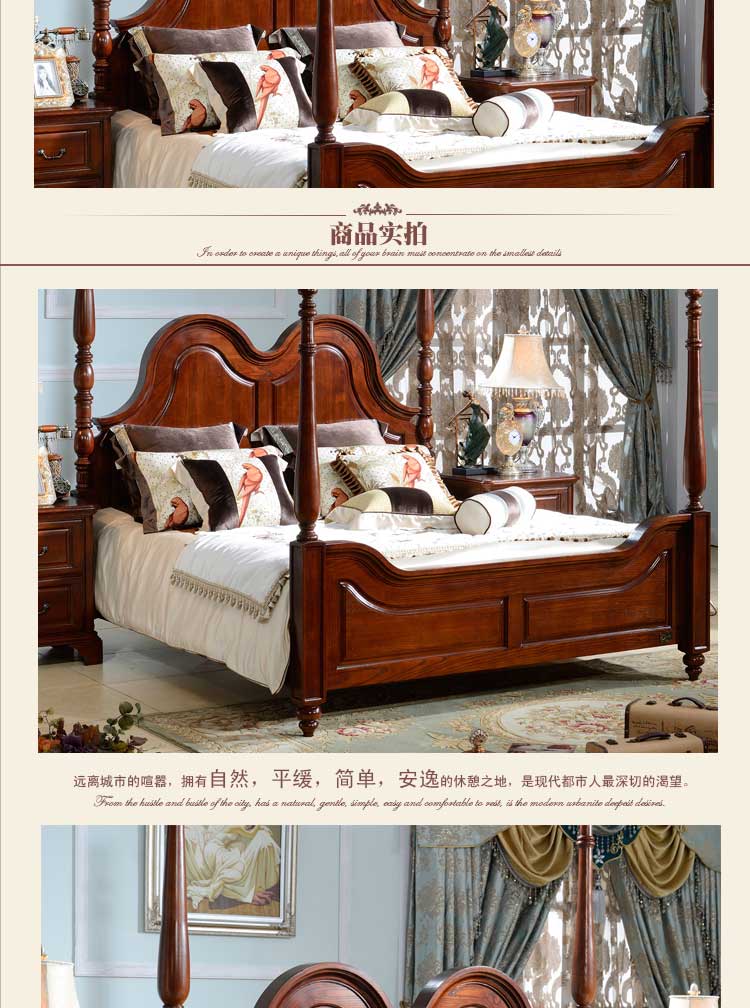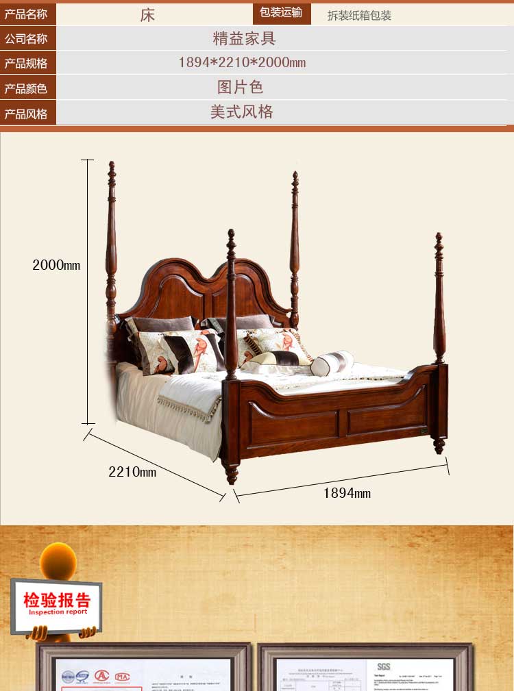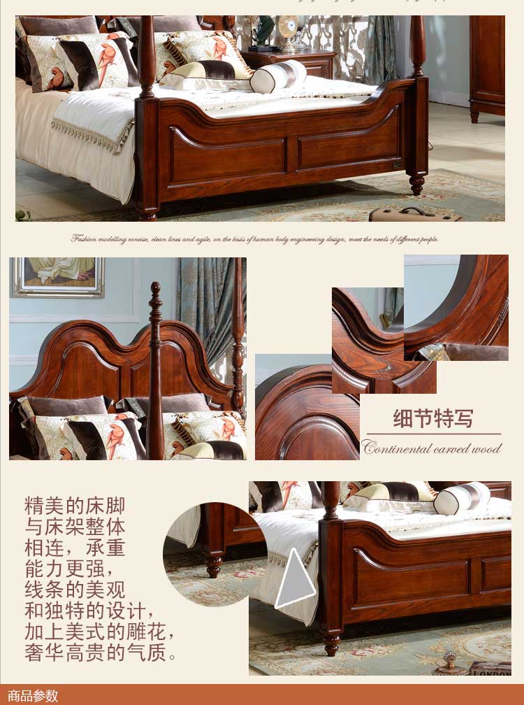 精益豪庭 美式全实木双人床 美式大床1.8米婚床复古床342