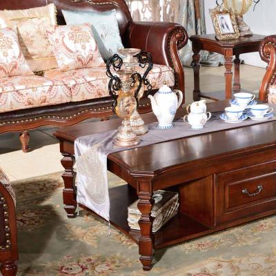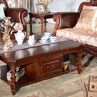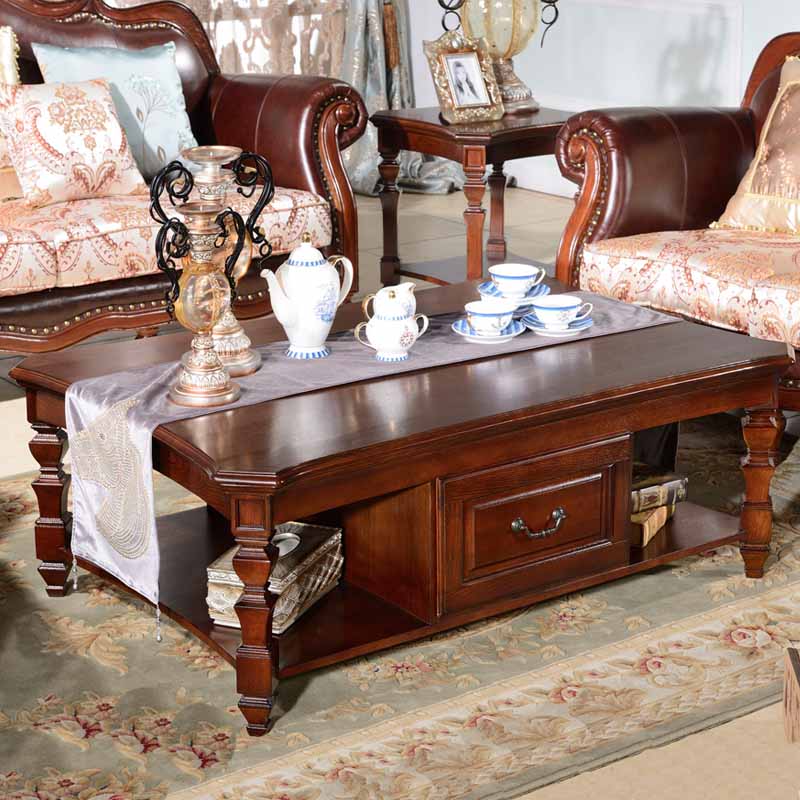 精益豪庭 美式大理石面茶几 美式茶几实木客厅小户型长方形木面桌茶331茶几