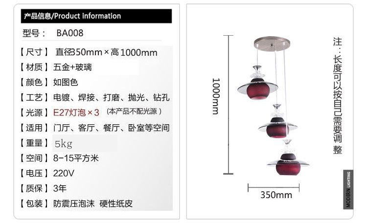 泊图灯饰简约餐厅灯吊灯三头餐吊灯吧台灯饰现代灯具BA008包邮