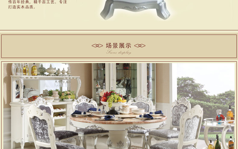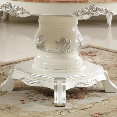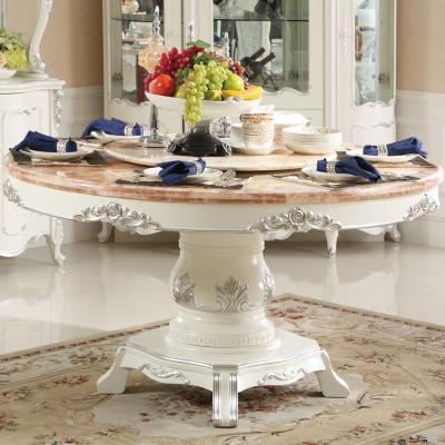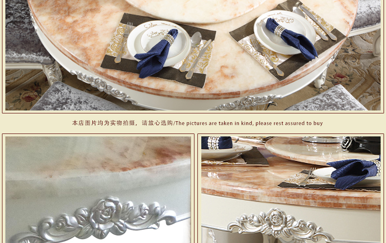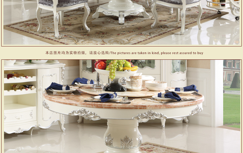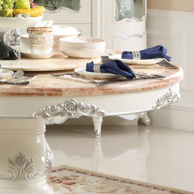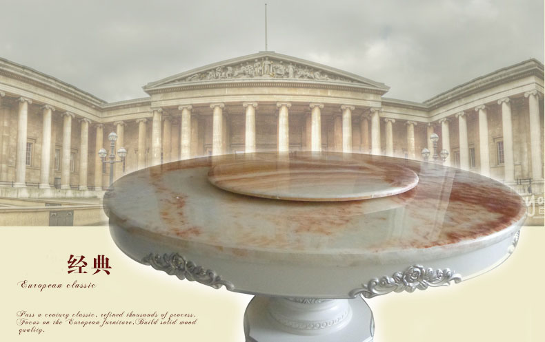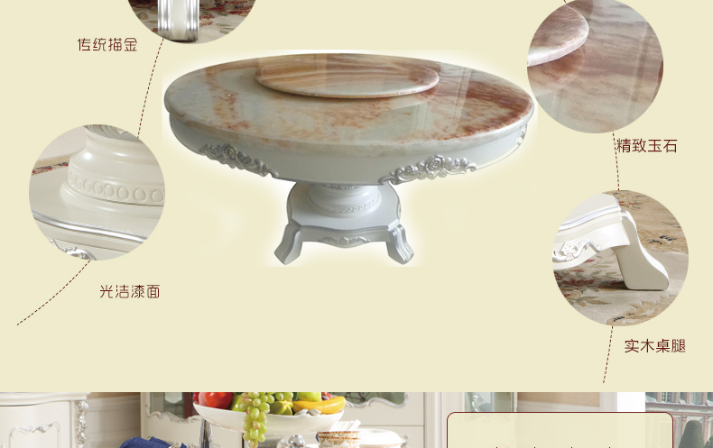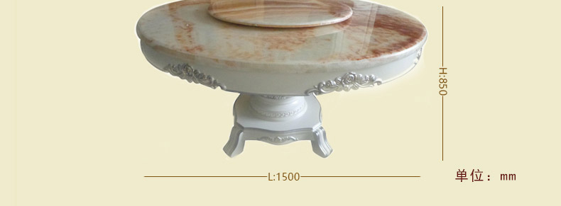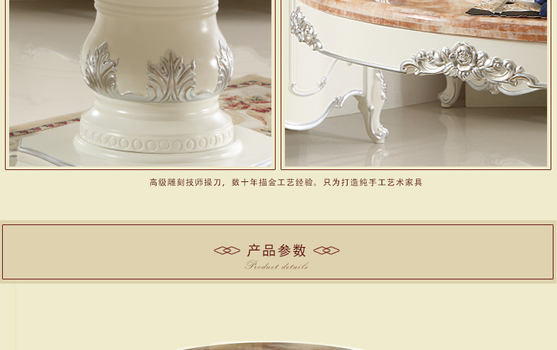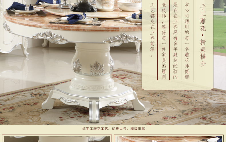 尚多家居 CT803象牙白+银箔做旧法式雕花 玉石面圆形餐台餐桌