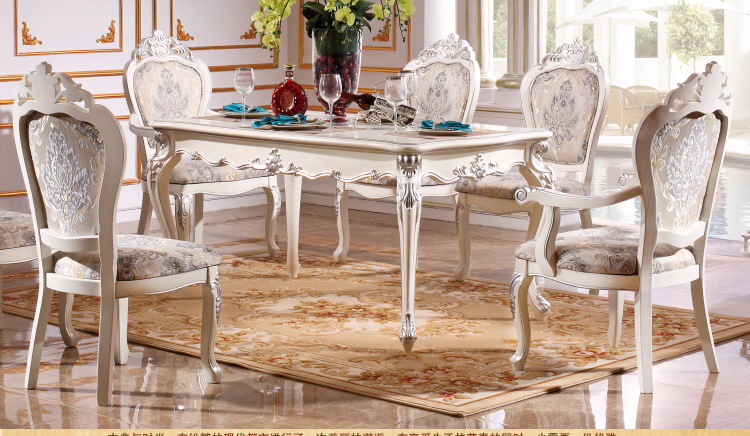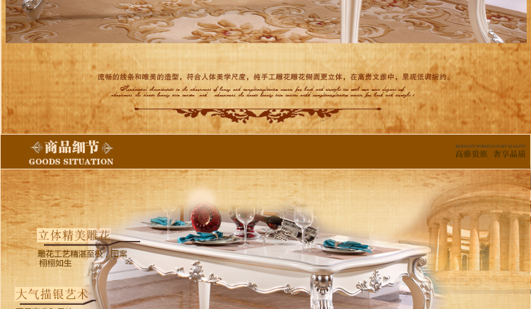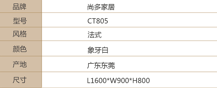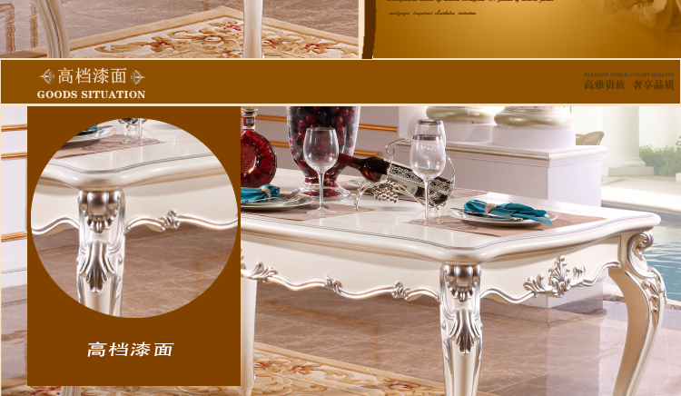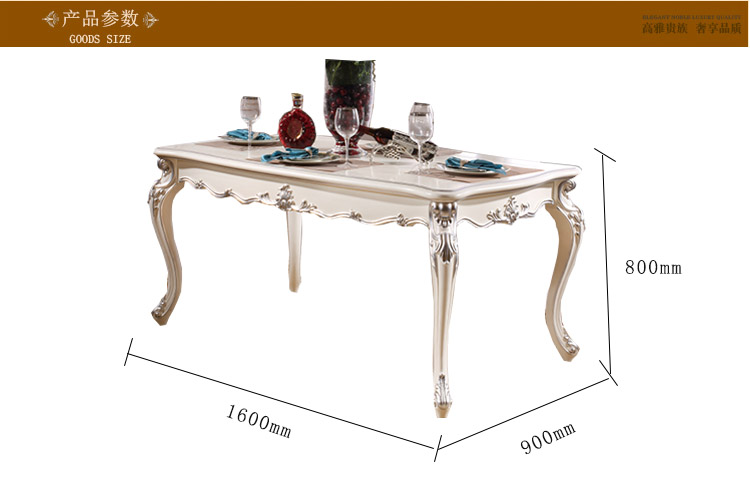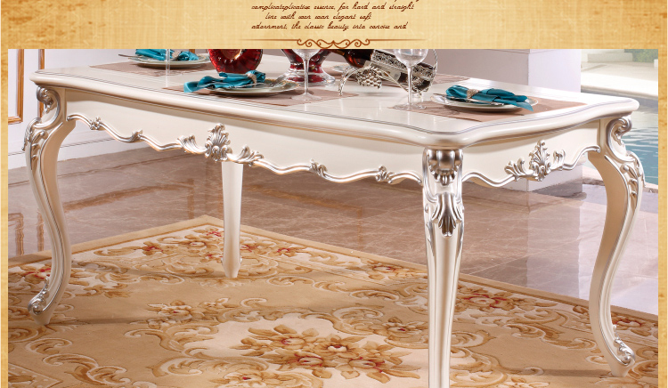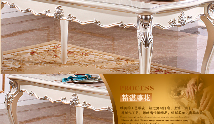 尚多家居 CT805象牙白+银箔做旧法式雕花 长方形餐台餐桌