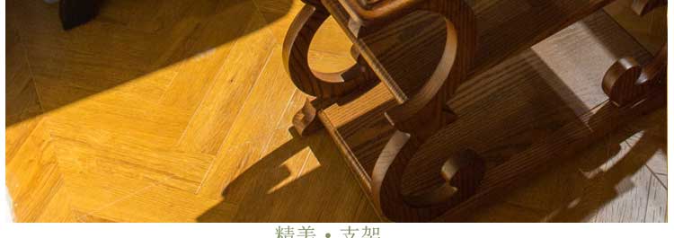 100%天然实木面板,结构均匀紧致,文理清晰优美,具有天然高强度耐磨性且不易开裂,散发着古朴雅致的气息,唯美精致,华丽圆润。
