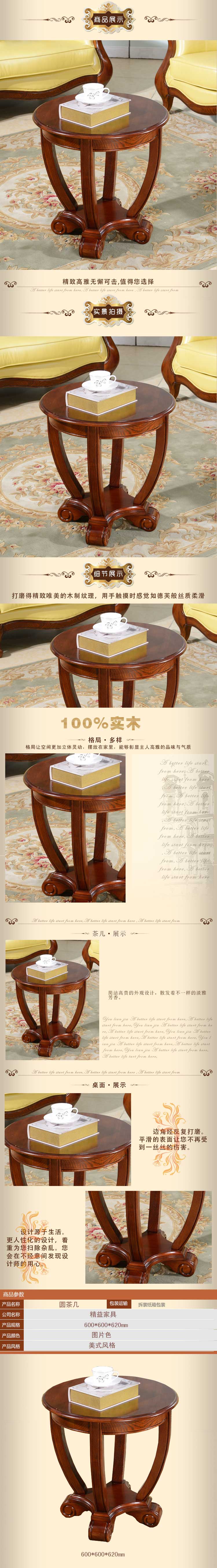 精益豪庭 美式圆形茶水台美式沙发角几边几美式乡村实木茶几335圆茶几