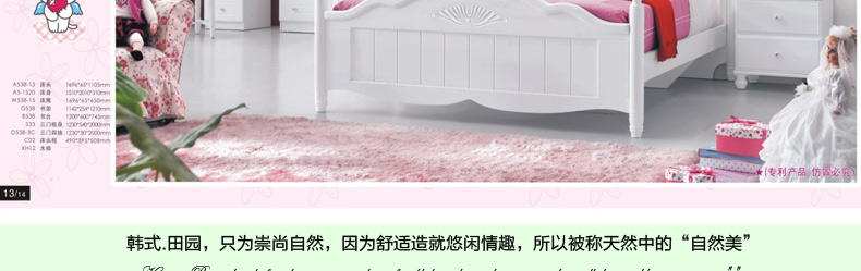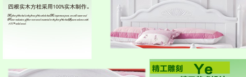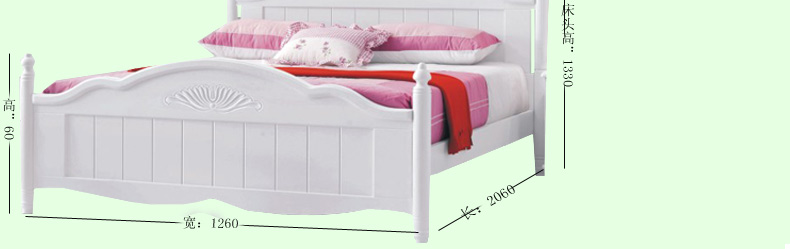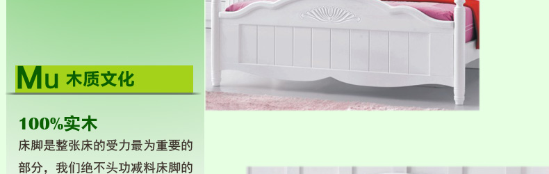 杰克丹尼 全实木松木排骨架床 韩式床1.2米 儿童床1.5米田园床 双人床简约时尚床A538